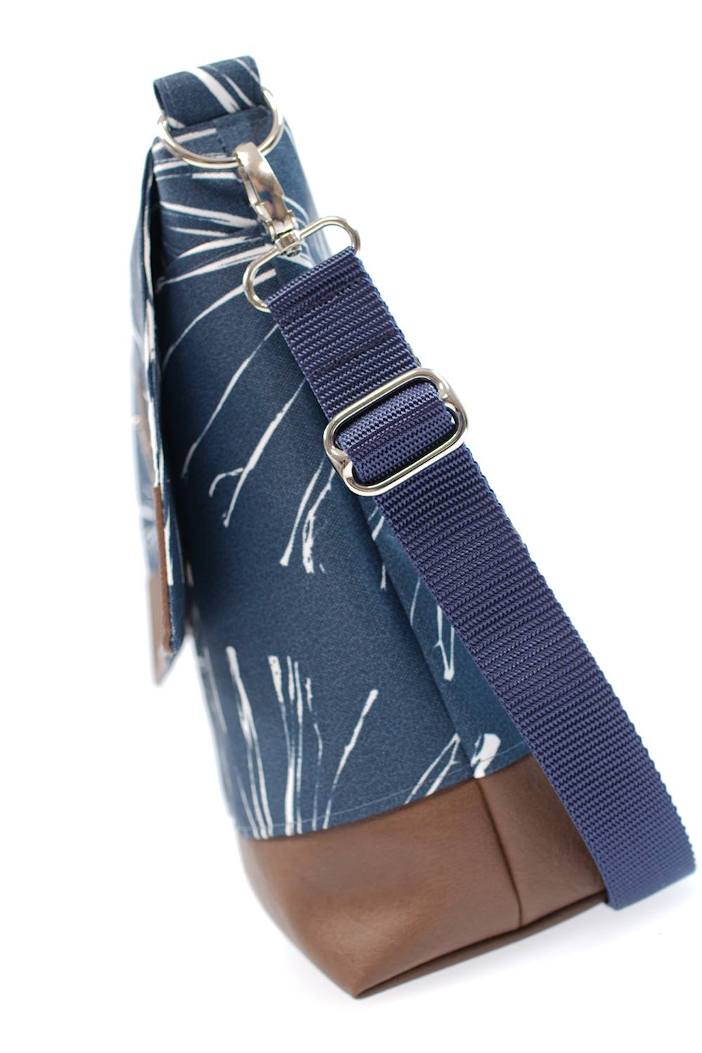 - Dazu ein robustes, schokobraunes Kunstleder als Taschenboden