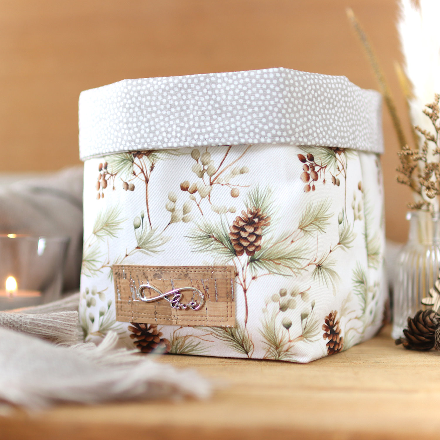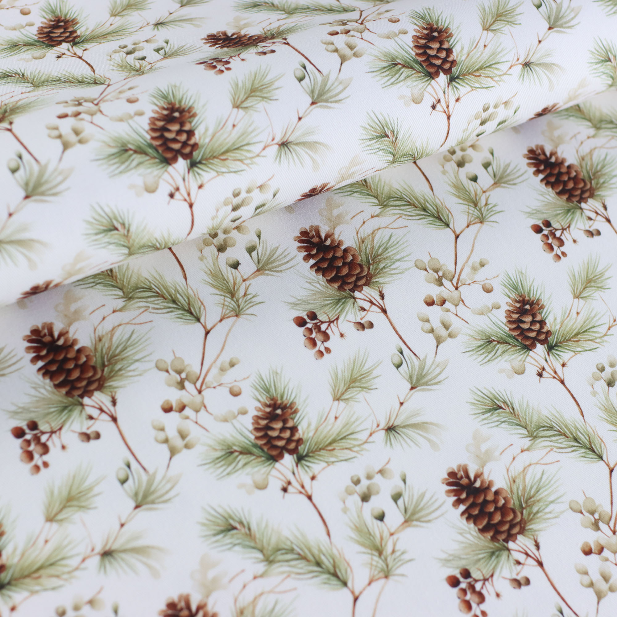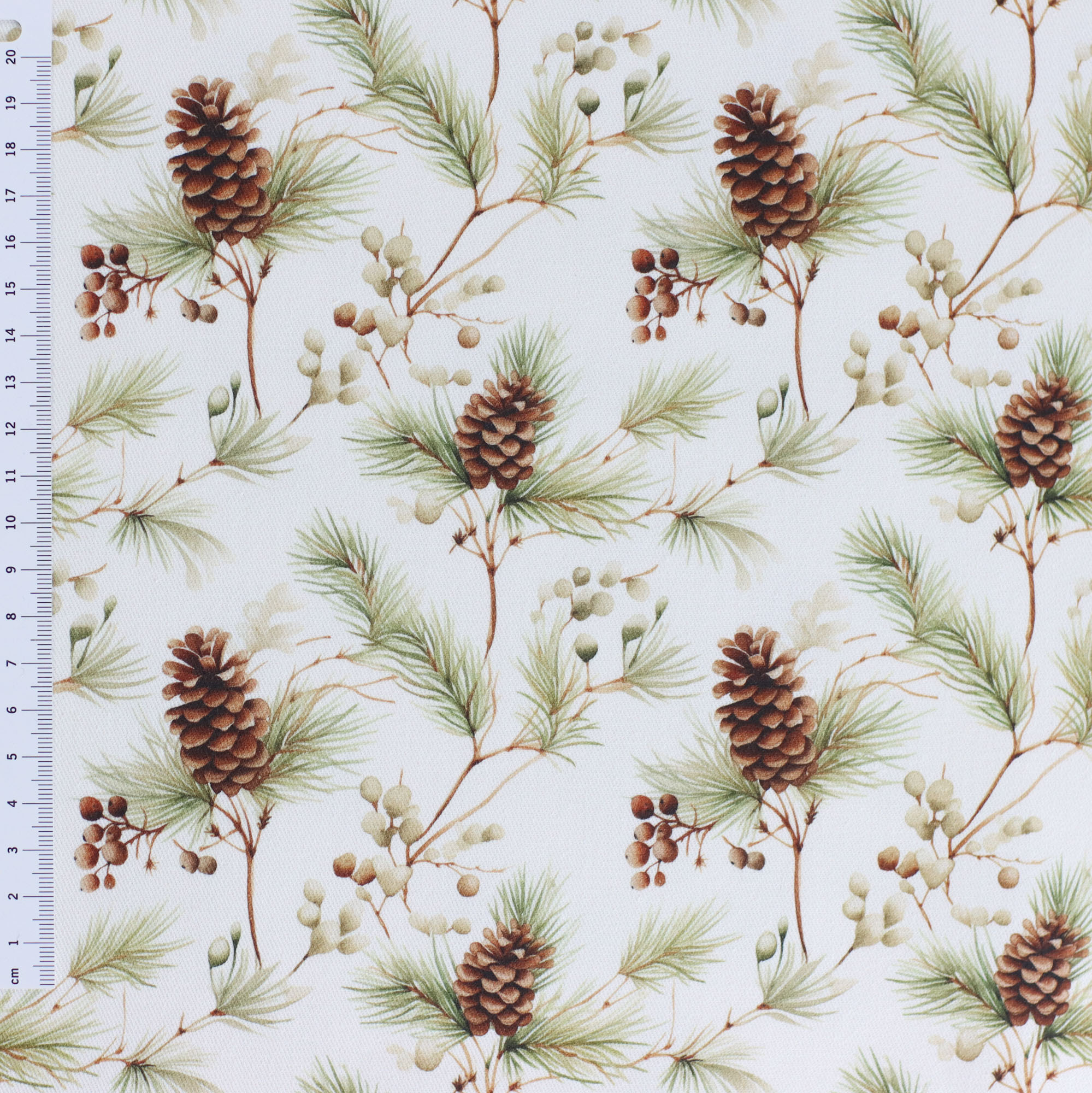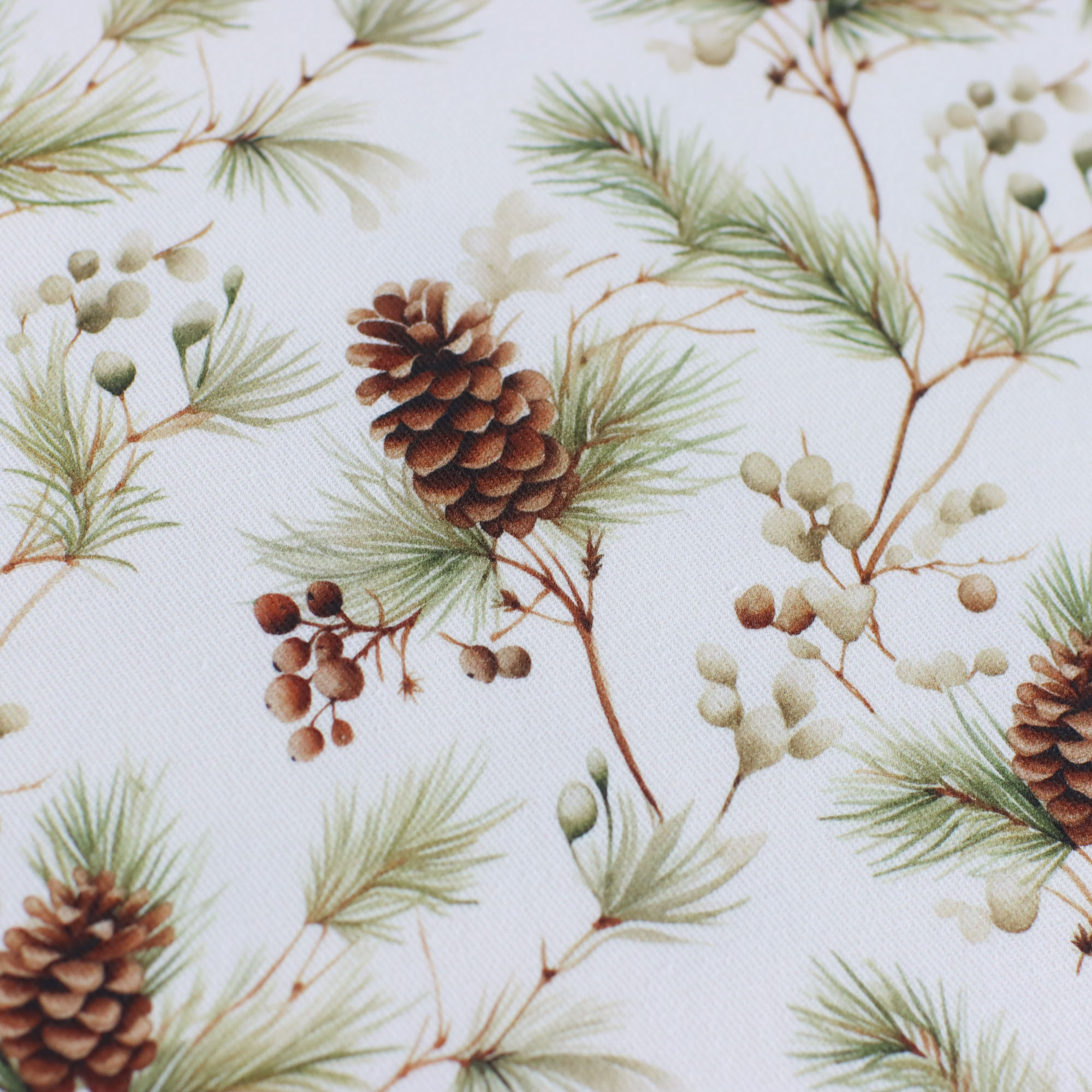 Unsere Eigenproduktion 'Tannenzapfen natur' - Fester, heller Canvas mit Tannanzweigen und Zapfen. Perfekt für winterlich-weihnachtliche Accessoires, Tischdecken, Utensilos und vieles mehr!