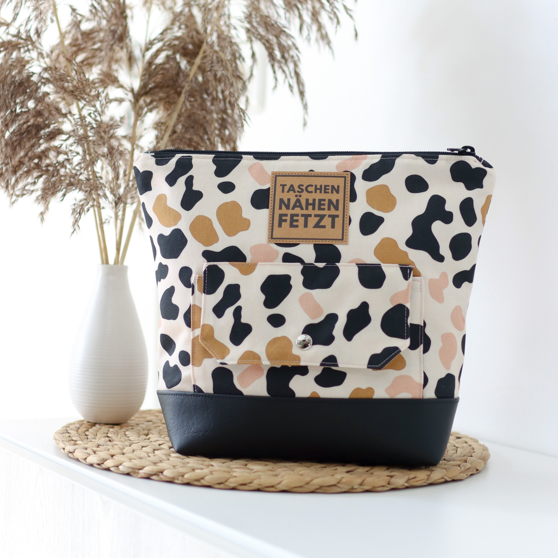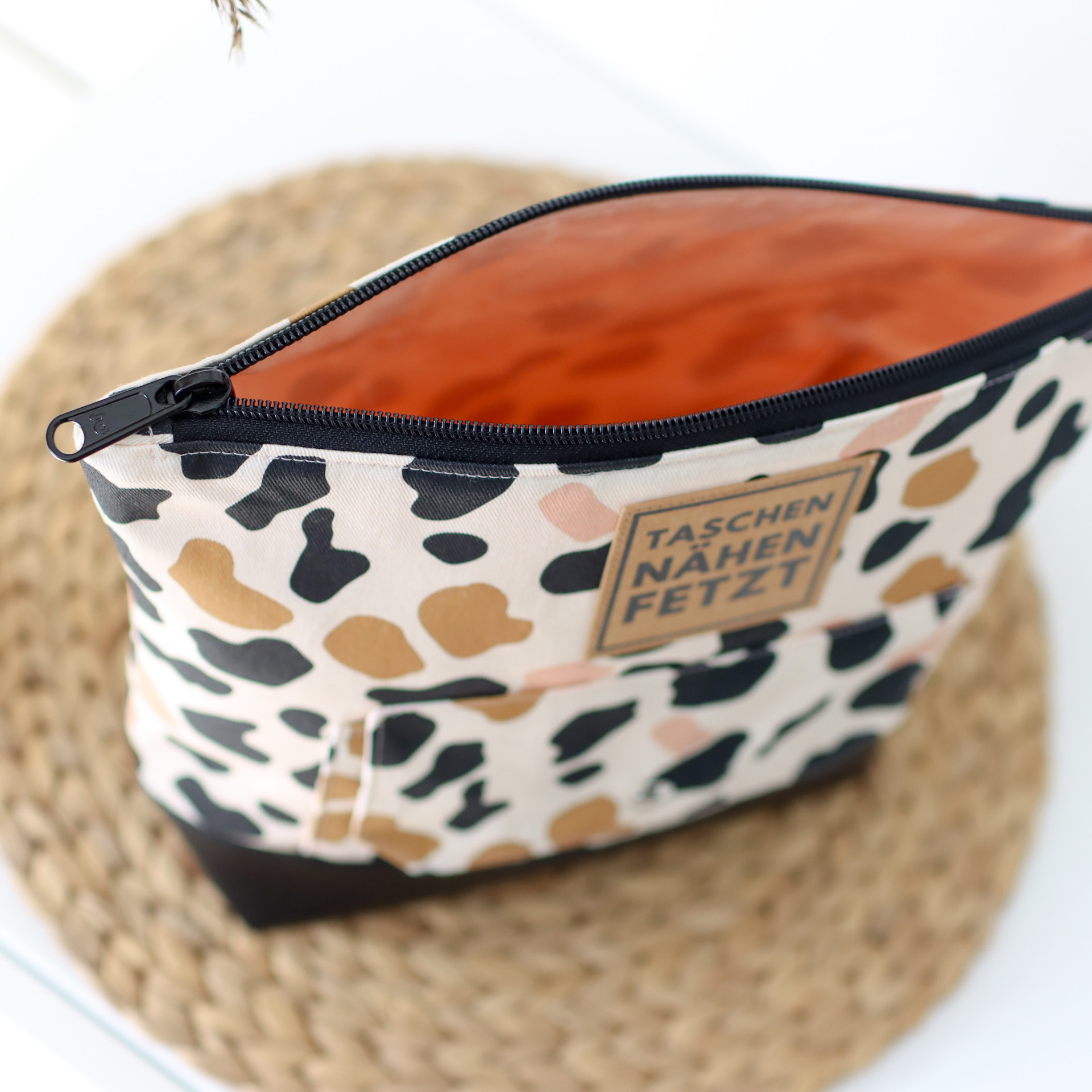 - Außen ein fester, heller Canvas mit angesagtem Leo-Print