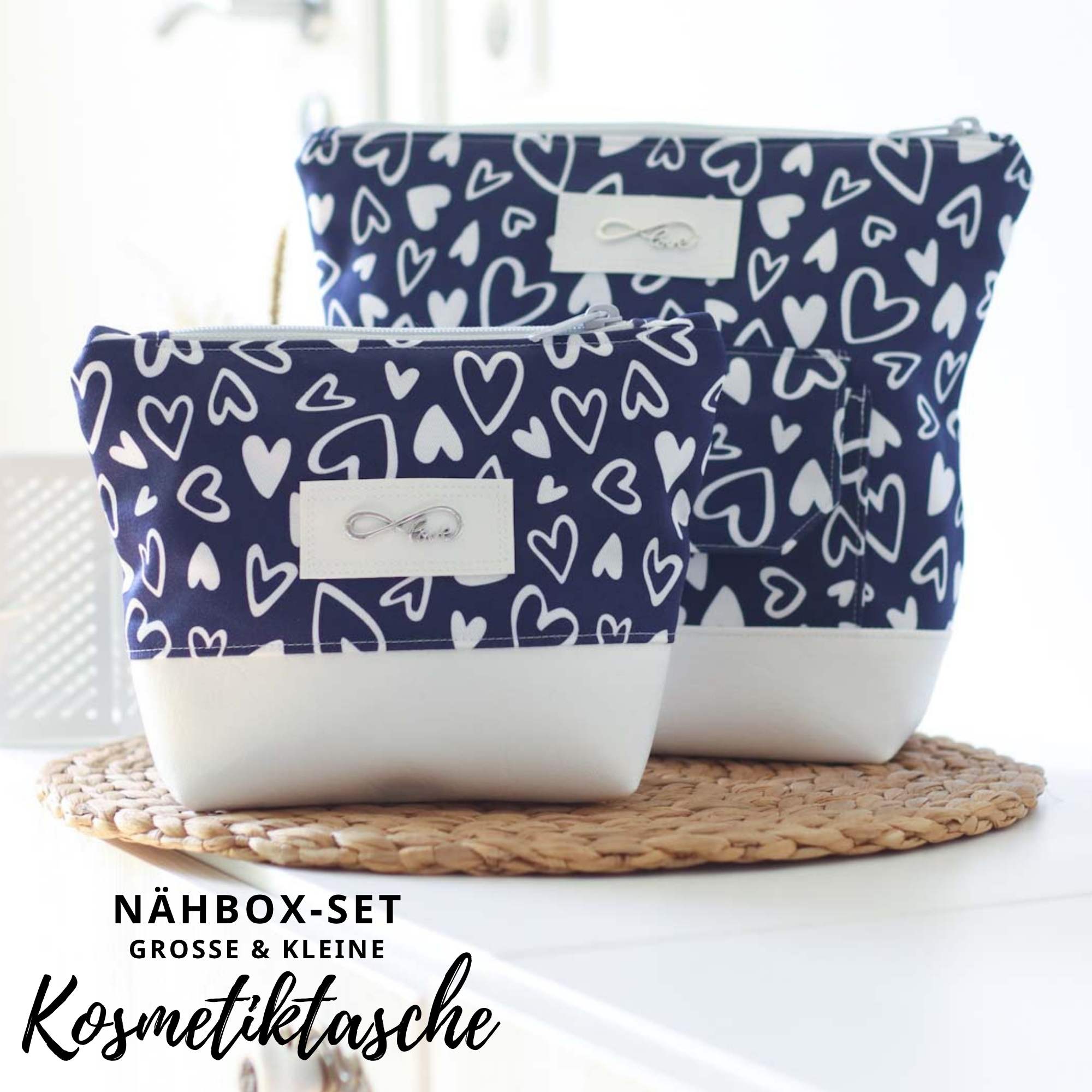 Hinweis: Du erhältst eine Nähbox, mit der du dir die Kosmetiktasche selbst nähen kannst und keine fertig genähte Variante :)