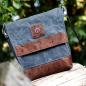 - Außen ein stahlgrauer, gewachster Canvas aus England (Oilskin)