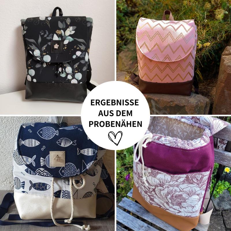 Mit diesem Ebook bekommst du eine komplette (digitale) Anleitung, mit der du dir einen Rucksack nähen kannst. Die Nähanleitung umfasst 49 Seiten und enthält detaillierte Erläuterungen, mehr als 200 Abbildungen, Tipps zur Material- und Stoffauswahl, sowie Tipps zum Nähen und zur Verarbeitung verschiedener Stoffe. Das Schnittmuster zum Ausdrucken ist im A4 Format angelegt und am Ende vom Ebook findest du viele Ergebnisse aus dem Probenähen, von denen du dich inspirieren lassen kannst.