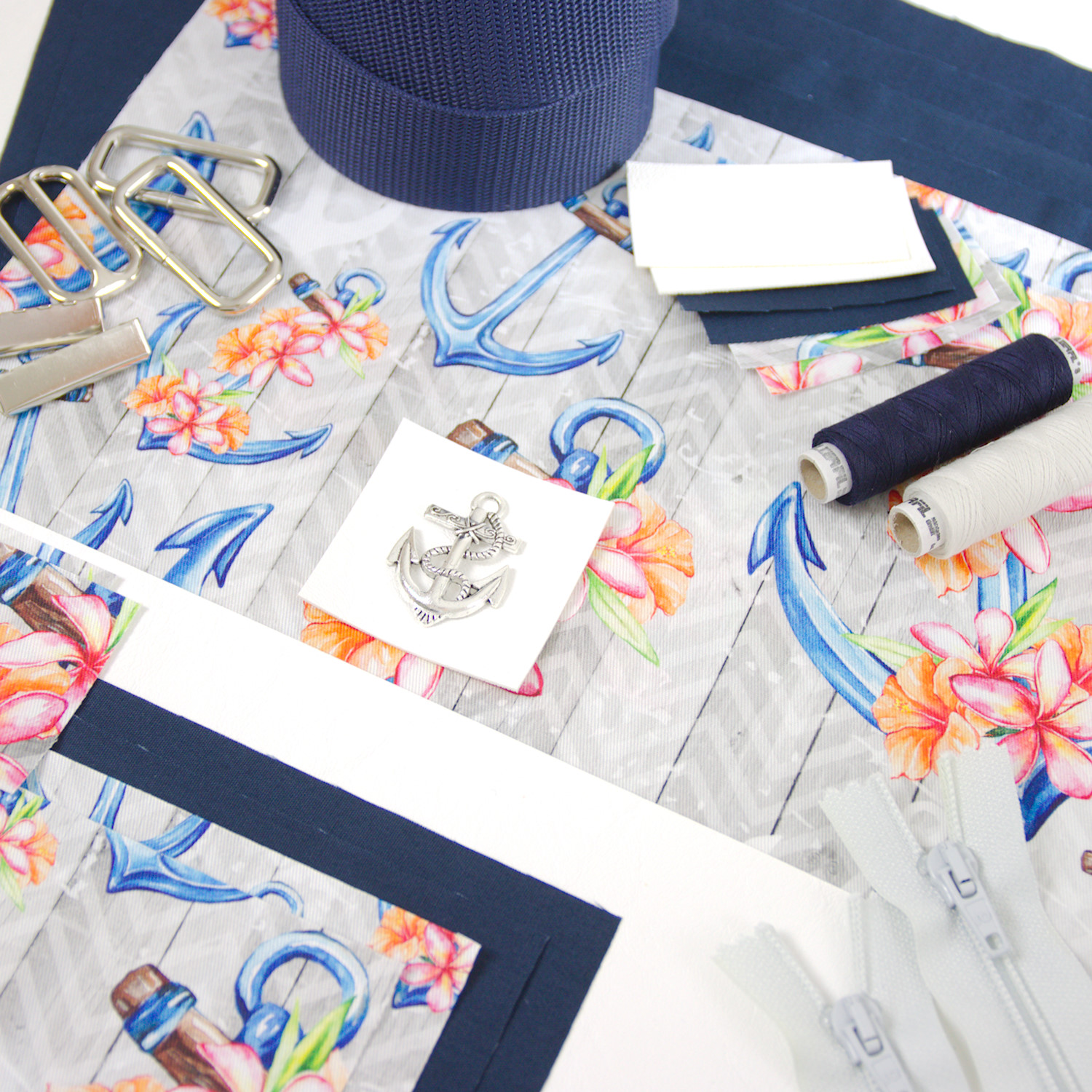 - Da wir noch nicht von allen Taschengrößen ein Beispiel-Modell genäht haben, siehst du bei diesem Nähset eine Grafik der Tasche. In den Artikelbildern zeigen wir ein Design-Beispiel der Tasche, damit du sie dir auch live anschauen kannst. Die Stoffauswahl entspricht dem Design 'Anchor & Flowers':