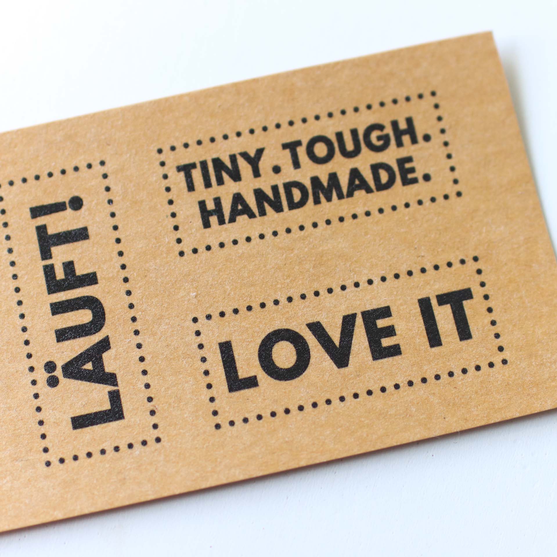 Unsere brandneuen Label sind da! Du bekommst hier ein Set aus 7 verschiedenen Label aus festem Waschpapier, die du ausschneiden und auf Taschen, Accessoires oder Kleidungsstücken aufnähen kannst. Verleihe deinen selbstgenähten Lieblingsteilen das gewisse Etwas :)