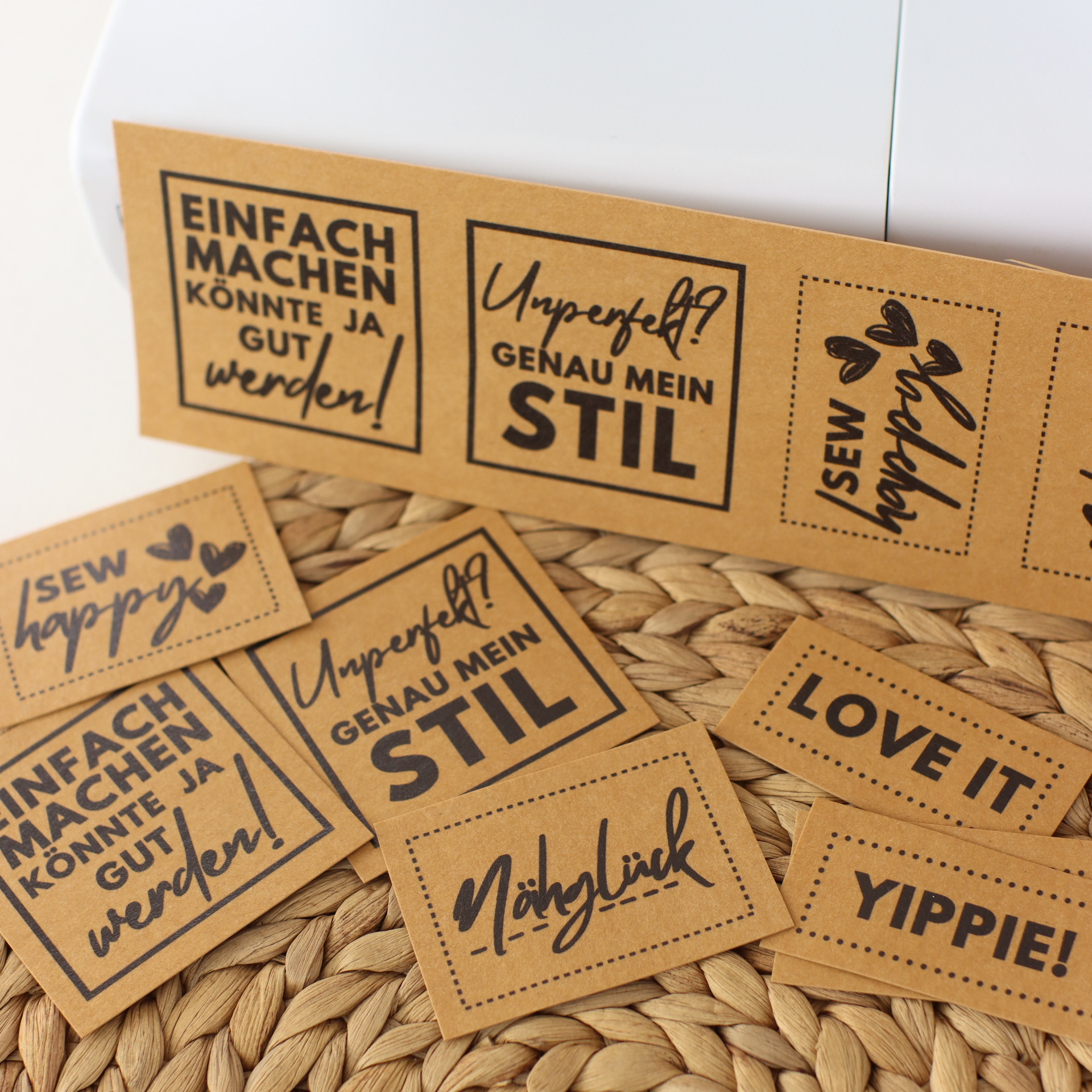 Unsere brandneuen Label sind da! Du bekommst hier ein Set aus 7 verschiedenen Label aus festem Waschpapier, die du ausschneiden und auf Taschen, Accessoires oder Kleidungsstücken aufnähen kannst. Verleihe deinen selbstgenähten Lieblingsteilen das gewisse Etwas :)