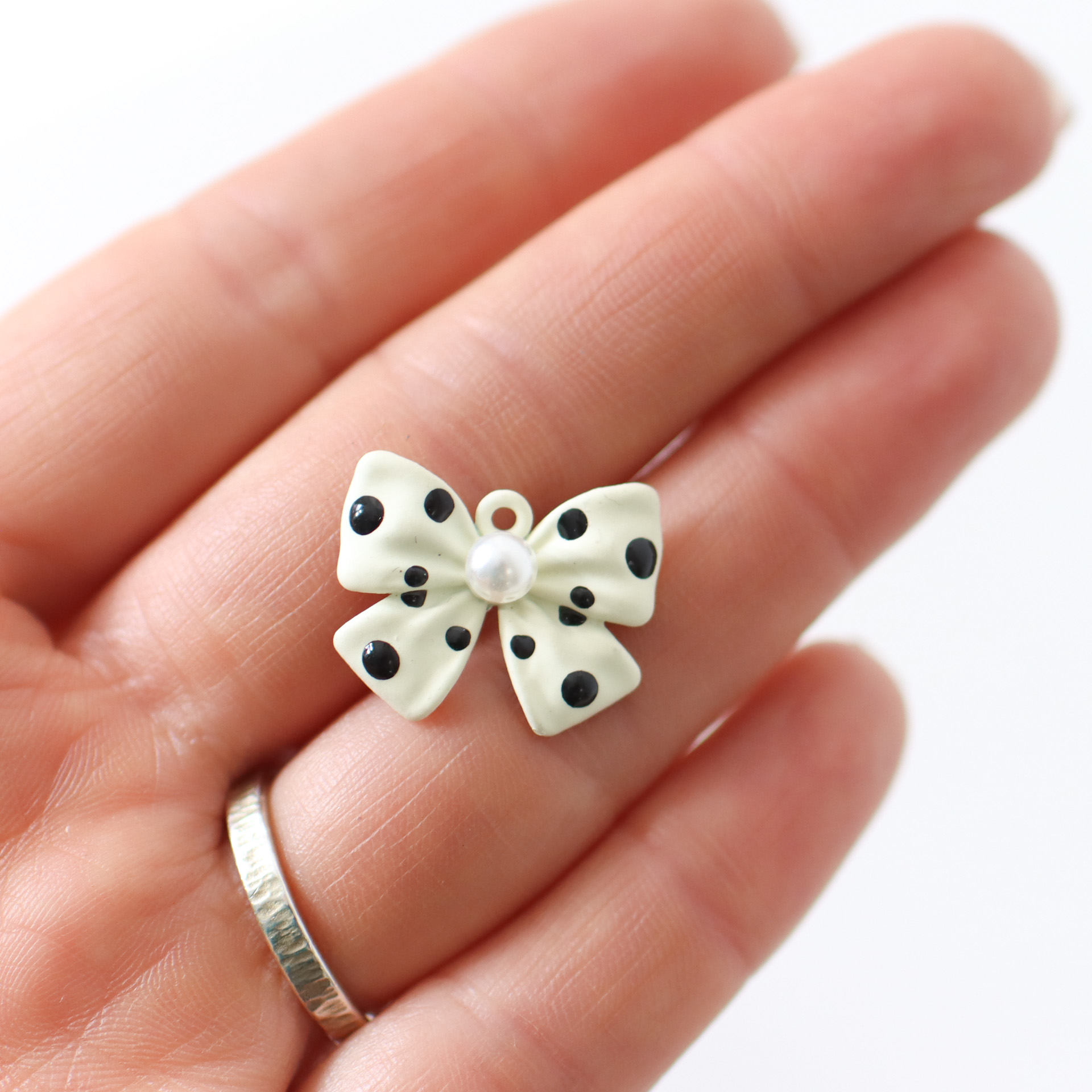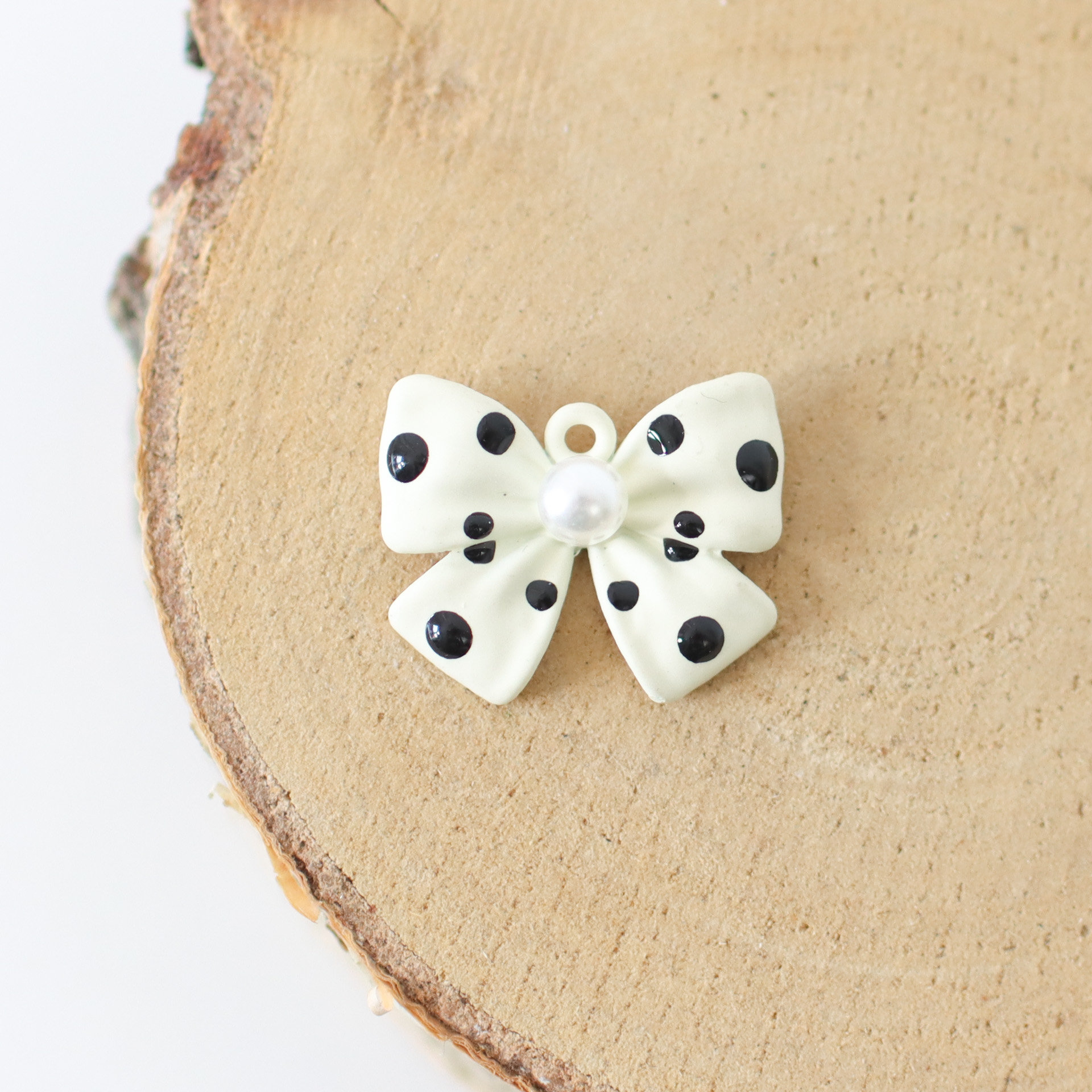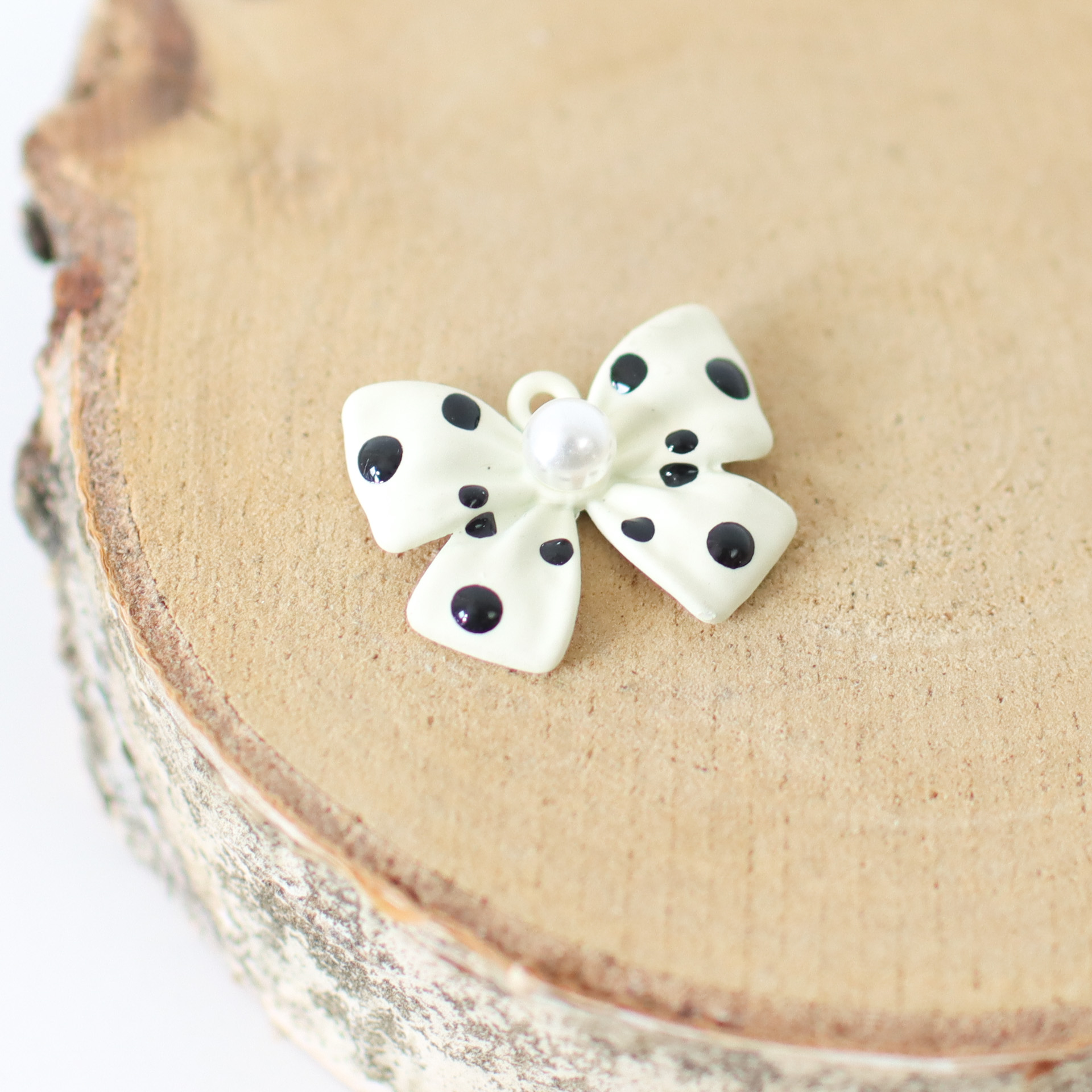 Farbe: weiß mit schwarzen Pünktchen und kleiner Perle