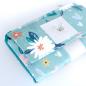 - Exklusive Eigenproduktion: Außenseite aus festem, mintfarbenem Canvas mit Blumen in weiß und türkis, dazu ein cremefarbenes Kunstleder