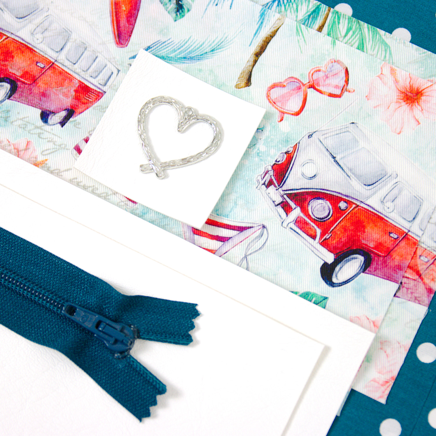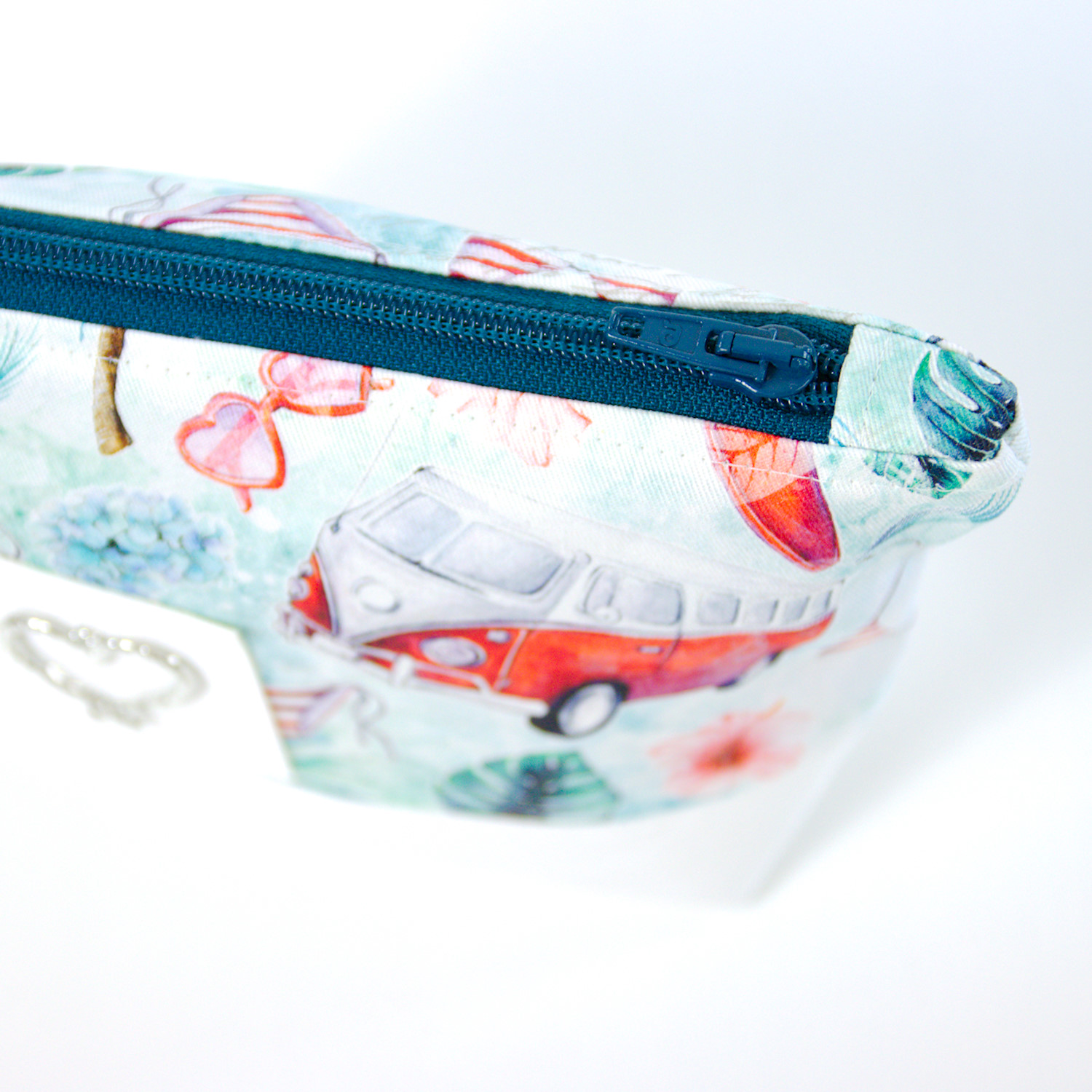 - Exklusive Eigenproduktion: Außenseite aus hellem Canvas mit Palmen und Bullis auf tropischem Untergrund in frischen Farben