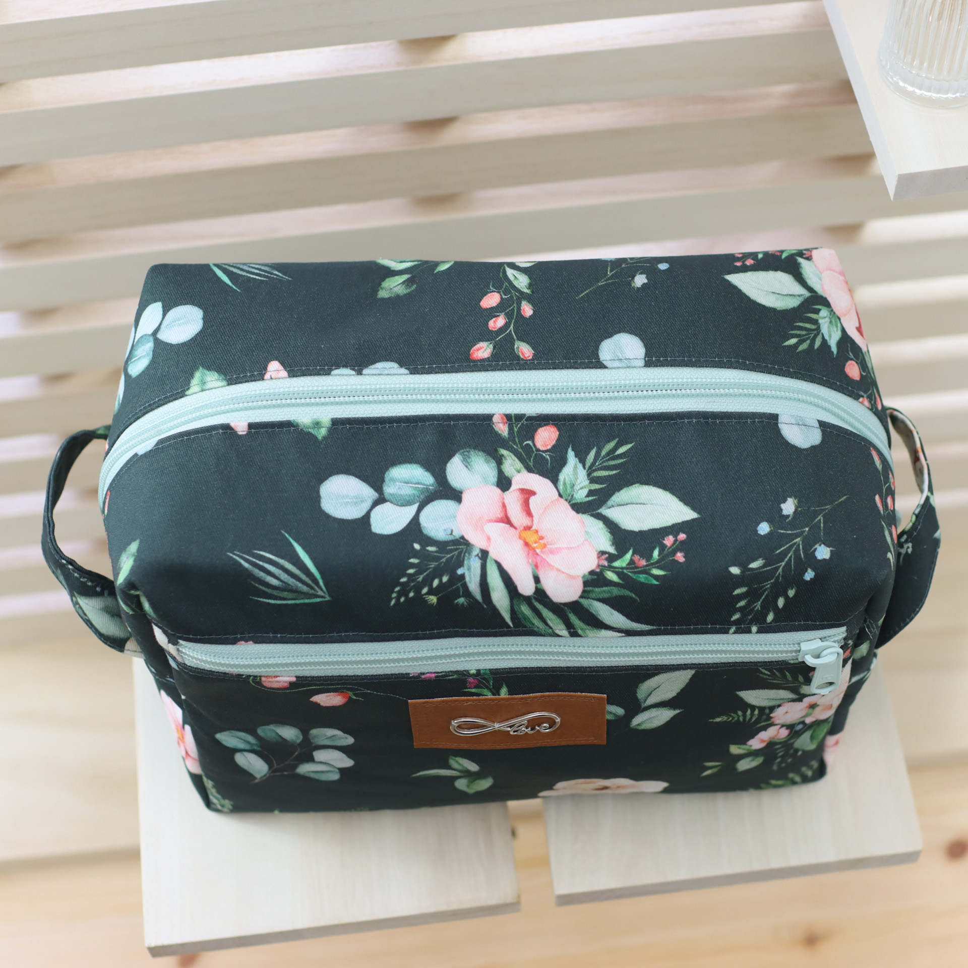 Die Boxy Bag Maxi ist die größte Variante der Serie und ein echtes Raumwunder – ideal für alle, die viel verstauen möchten. Sie bietet genügend Platz, damit Duschgel-, Shampoo- oder Bodylotion-Flaschen stehend transportiert werden können, was sie zu einem perfekten Beauty Case für Reisen macht. Mit ihren Maßen von 25 cm (Breite) × 18 cm (Höhe) × 15 cm (Tiefe) eignet sie sich außerdem hervorragend für Handarbeitsprojekte, wie Strickwolle, Häkelmaterial oder Bastelzubehör. Die weite Öffnung sorgt für einen schnellen Überblick, während die seitlichen Schlaufen das Öffnen und Schließen des großen Reißverschlusses angenehm erleichtern. Außen befindet sich ein Reißverschlussfach für Kleinigkeiten und im Inneren werden zwei zusätzliche Innenfächer eingenäht, damit alles gut sortiert bleibt. Eine geräumige, formstabile Tasche, die für maximale Ordnung sorgt – zuhause und unterwegs.