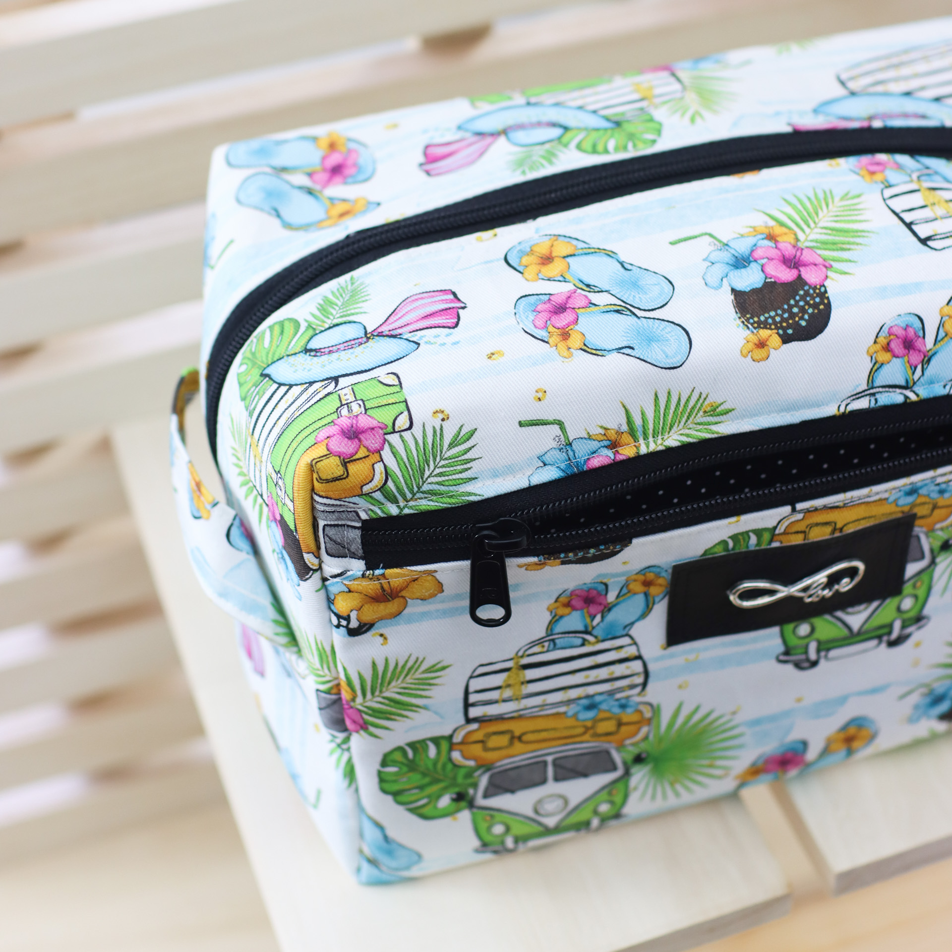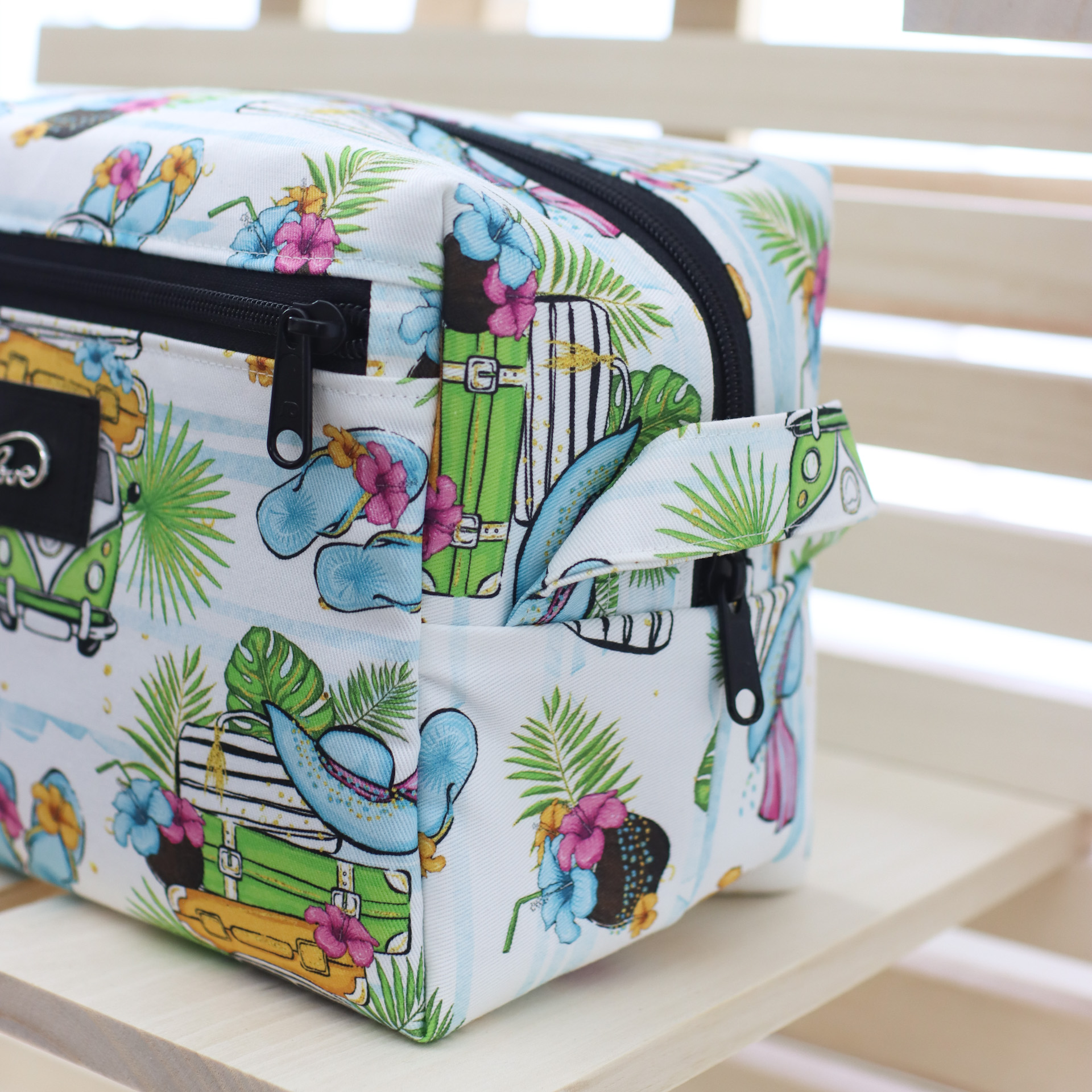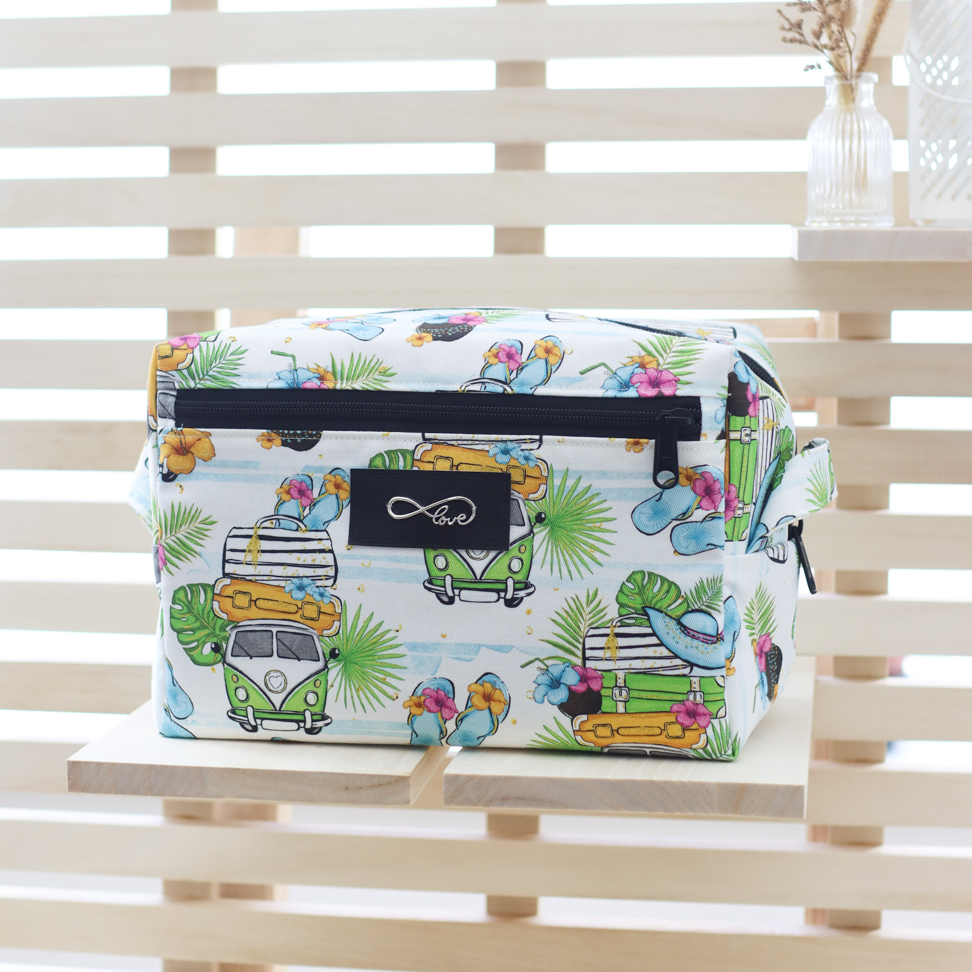Die Boxy Bag Maxi ist die größte Variante der Serie und ein echtes Raumwunder – ideal für alle, die viel verstauen möchten. Sie bietet genügend Platz, damit Duschgel-, Shampoo- oder Bodylotion-Flaschen stehend transportiert werden können, was sie zu einem perfekten Beauty Case für Reisen macht. Mit ihren Maßen von 25 cm (Breite) × 18 cm (Höhe) × 15 cm (Tiefe) eignet sie sich außerdem hervorragend für Handarbeitsprojekte, wie Strickwolle, Häkelmaterial oder Bastelzubehör. Die weite Öffnung sorgt für einen schnellen Überblick, während die seitlichen Schlaufen das Öffnen und Schließen des großen Reißverschlusses angenehm erleichtern. Außen befindet sich ein Reißverschlussfach für Kleinigkeiten und im Inneren werden zwei zusätzliche Innenfächer eingenäht, damit alles gut sortiert bleibt. Eine geräumige, formstabile Tasche, die für maximale Ordnung sorgt – zuhause und unterwegs.