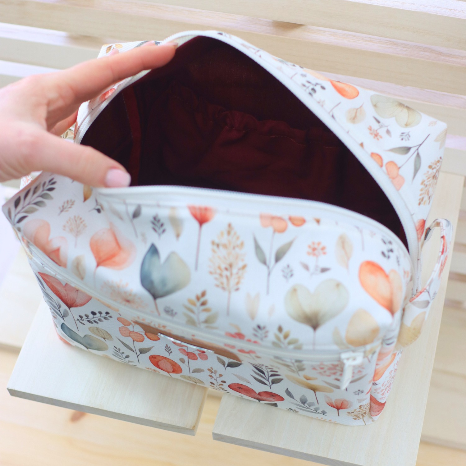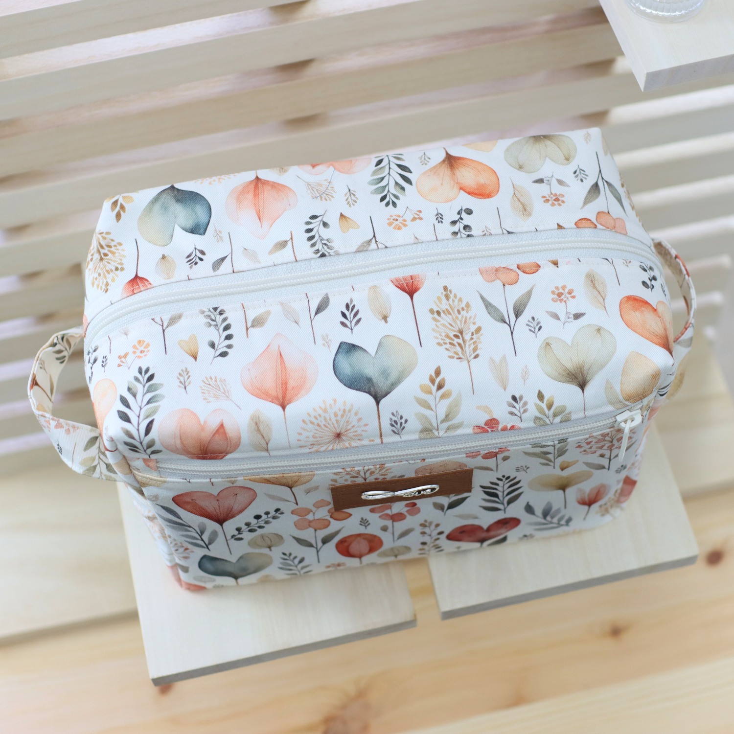 Die Boxy Bag Maxi ist die größte Variante der Serie und ein echtes Raumwunder – ideal für alle, die viel verstauen möchten. Sie bietet genügend Platz, damit Duschgel-, Shampoo- oder Bodylotion-Flaschen stehend transportiert werden können, was sie zu einem perfekten Beauty Case für Reisen macht. Mit ihren Maßen von 25 cm (Breite) × 18 cm (Höhe) × 15 cm (Tiefe) eignet sie sich außerdem hervorragend für Handarbeitsprojekte, wie Strickwolle, Häkelmaterial oder Bastelzubehör. Die weite Öffnung sorgt für einen schnellen Überblick, während die seitlichen Schlaufen das Öffnen und Schließen des großen Reißverschlusses angenehm erleichtern. Außen befindet sich ein Reißverschlussfach für Kleinigkeiten und im Inneren werden zwei zusätzliche Innenfächer eingenäht, damit alles gut sortiert bleibt. Eine geräumige, formstabile Tasche, die für maximale Ordnung sorgt – zuhause und unterwegs.
