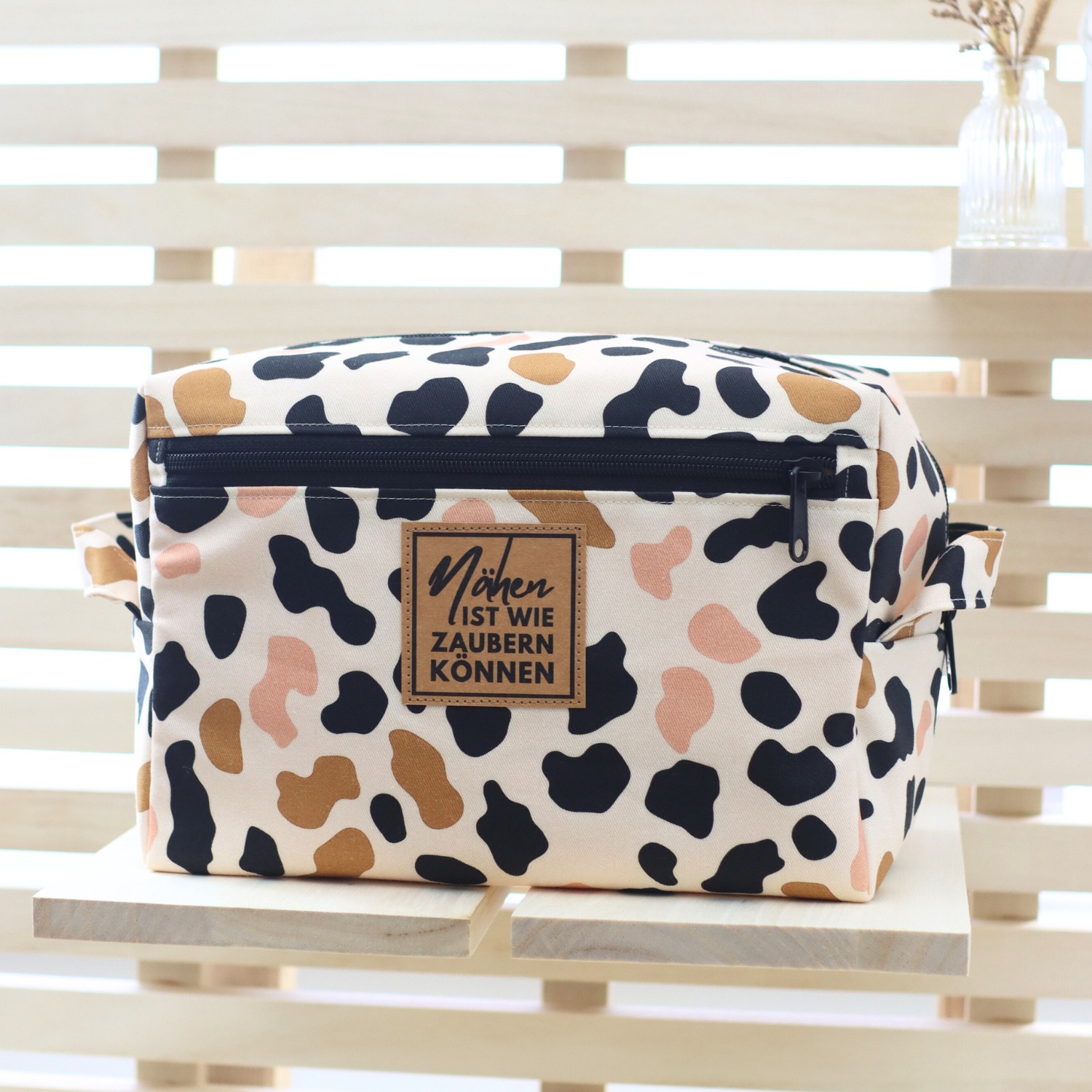 - Außen ein fester, heller Canvas mit angesagtem Leo-Print