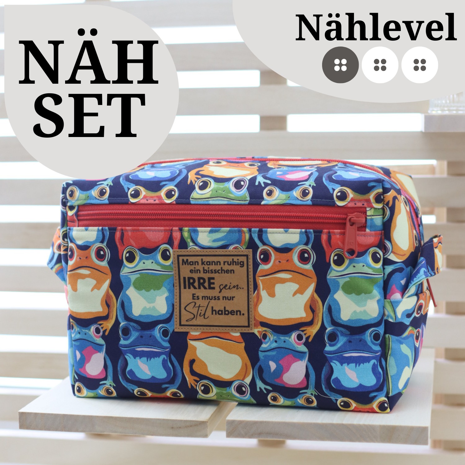 Mit diesem Nähset bekommst du ein Rundum-sorglos-Paket mit exakt zugeschnittenen Stoff- und Vliesteilen, Reißverschlüssen, Zubehör und natürlich einer ausführlichen, bebilderten Anleitung, die dich sicher durch jeden Schritt führt. Besonders praktisch: Zu den wichtigsten Arbeitsschritten gibt es ein Video-Tutorial, das dich zusätzlich zur Anleitung unterstützt.