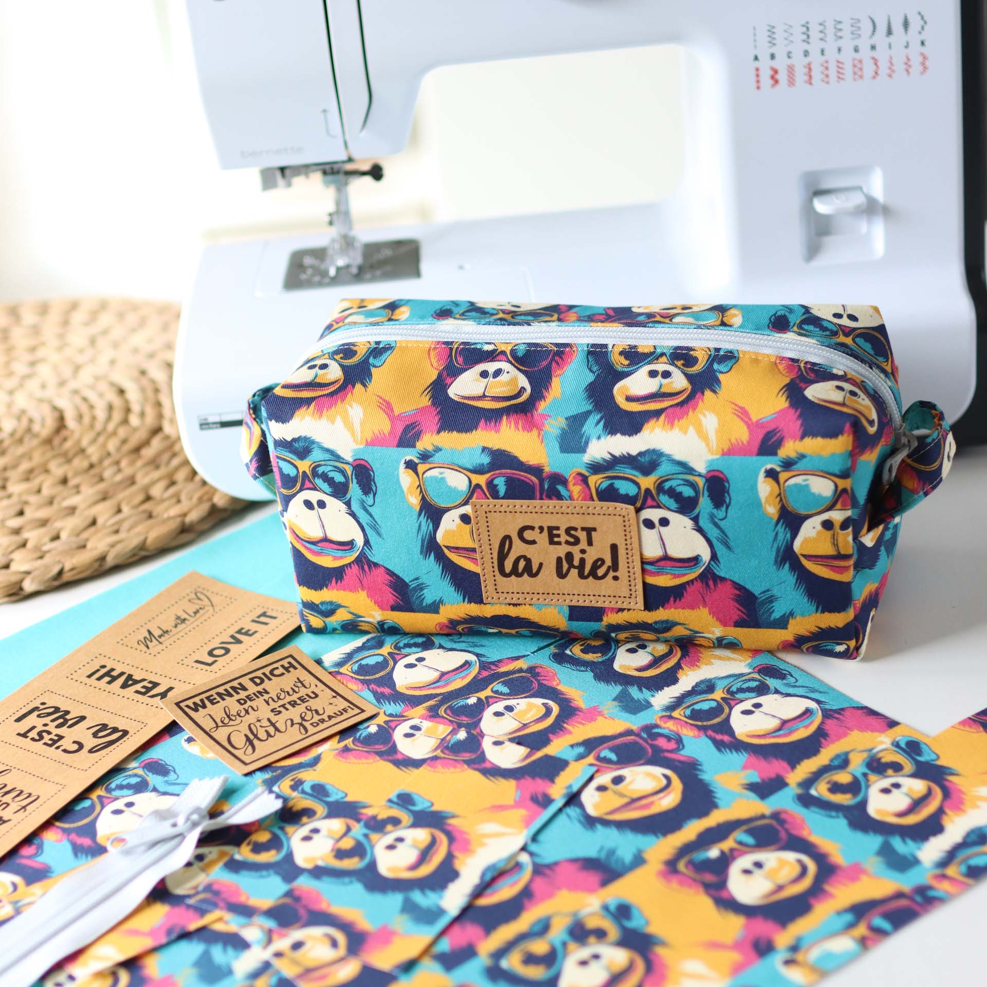 Die Boxy Bag Medium ist die ideale Größe, wenn du etwas mehr Platz brauchst, aber trotzdem eine handliche Tasche möchtest. Sie eignet sich perfekt für Kosmetik, Reiseapotheke, Nähutensilien, Kabel & Ladegeräte oder als Stifte-Mäppchen, wenn du bespielsweise etwas für Kinder nähen möchtest. Die fertige Tasche misst 23 cm (Breite) × 11 cm (Höhe) × 10 cm (Tiefe) und bietet damit viel Raum, ohne zu sperrig zu sein. Dank ihrer rechteckigen Form lässt sie sich weit öffnen, sodass du sofort den Überblick über den Inhalt hast und die seitlichen Halteschlaufen erleichtern dir das Öffnen und Schließen des großen Reißverschlusses. Mit diesem Nähset bekommst du ein Rundum-sorglos-Paket mit exakt zugeschnittenen Stoff- und Vliesteilen, Reißverschluss, Zubehör und natürlich einer ausführlichen, bebilderten Anleitung, die dich sicher durch jeden Schritt führt. Besonders praktisch: Zu den wichtigsten Arbeitsschritten gibt es ein Video-Tutorial, das dich zusätzlich zur Anleitung unterstützt.