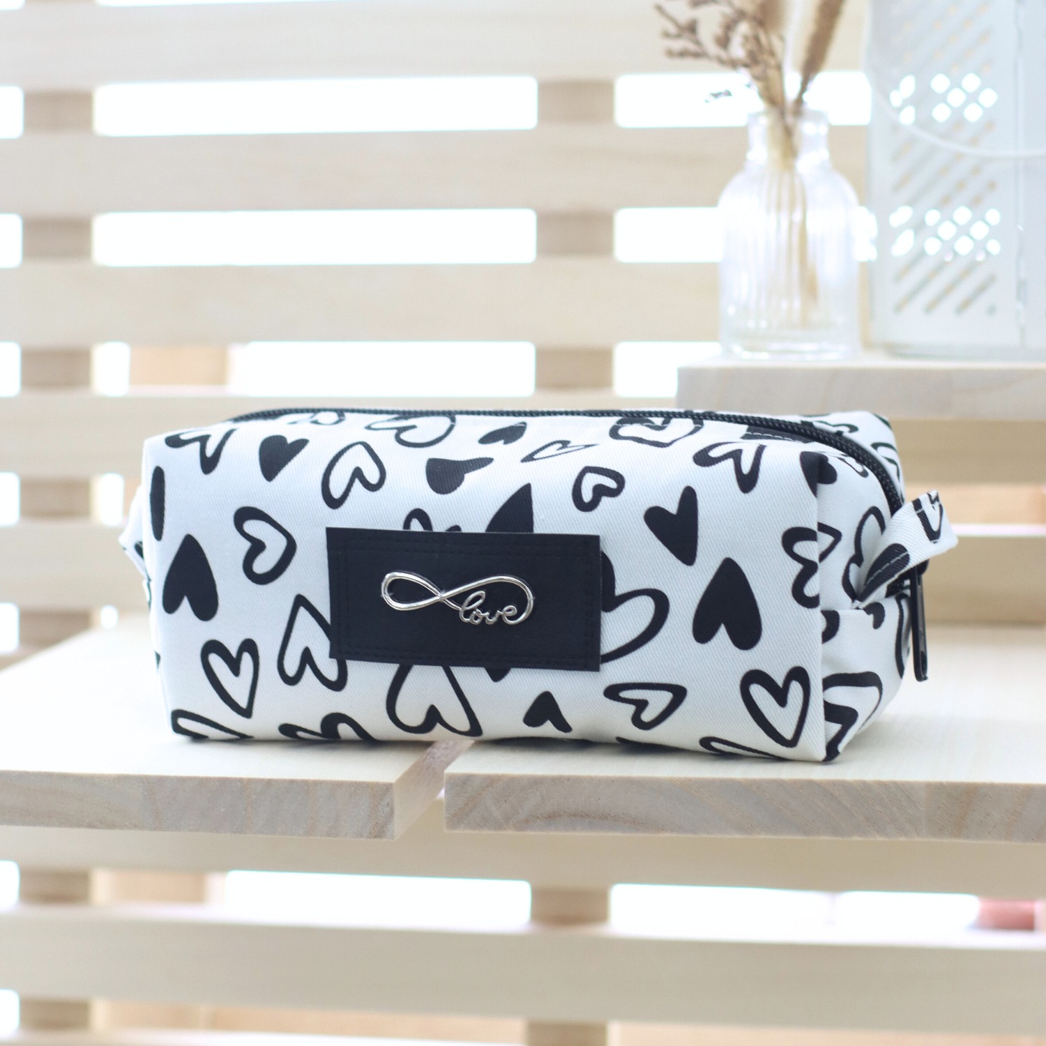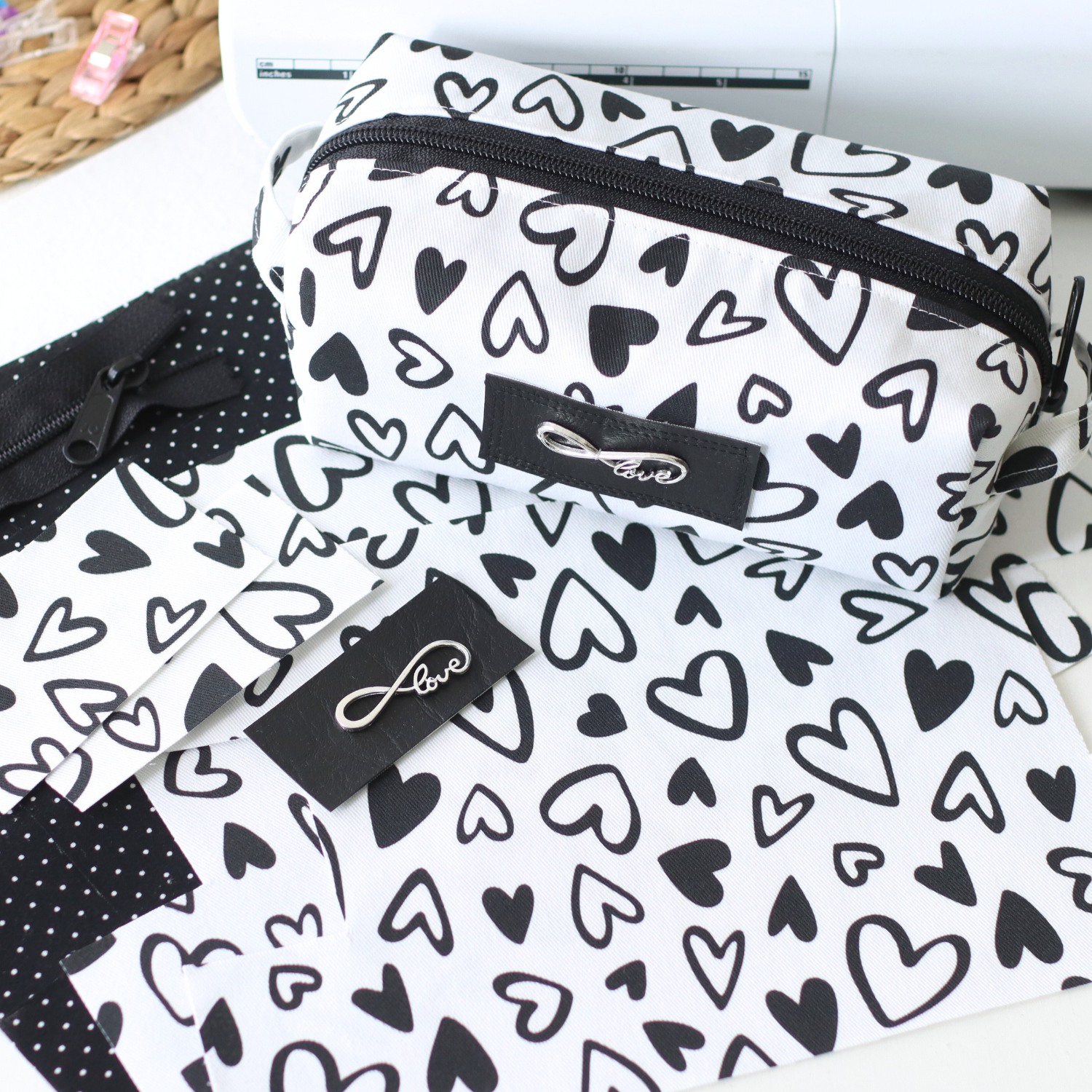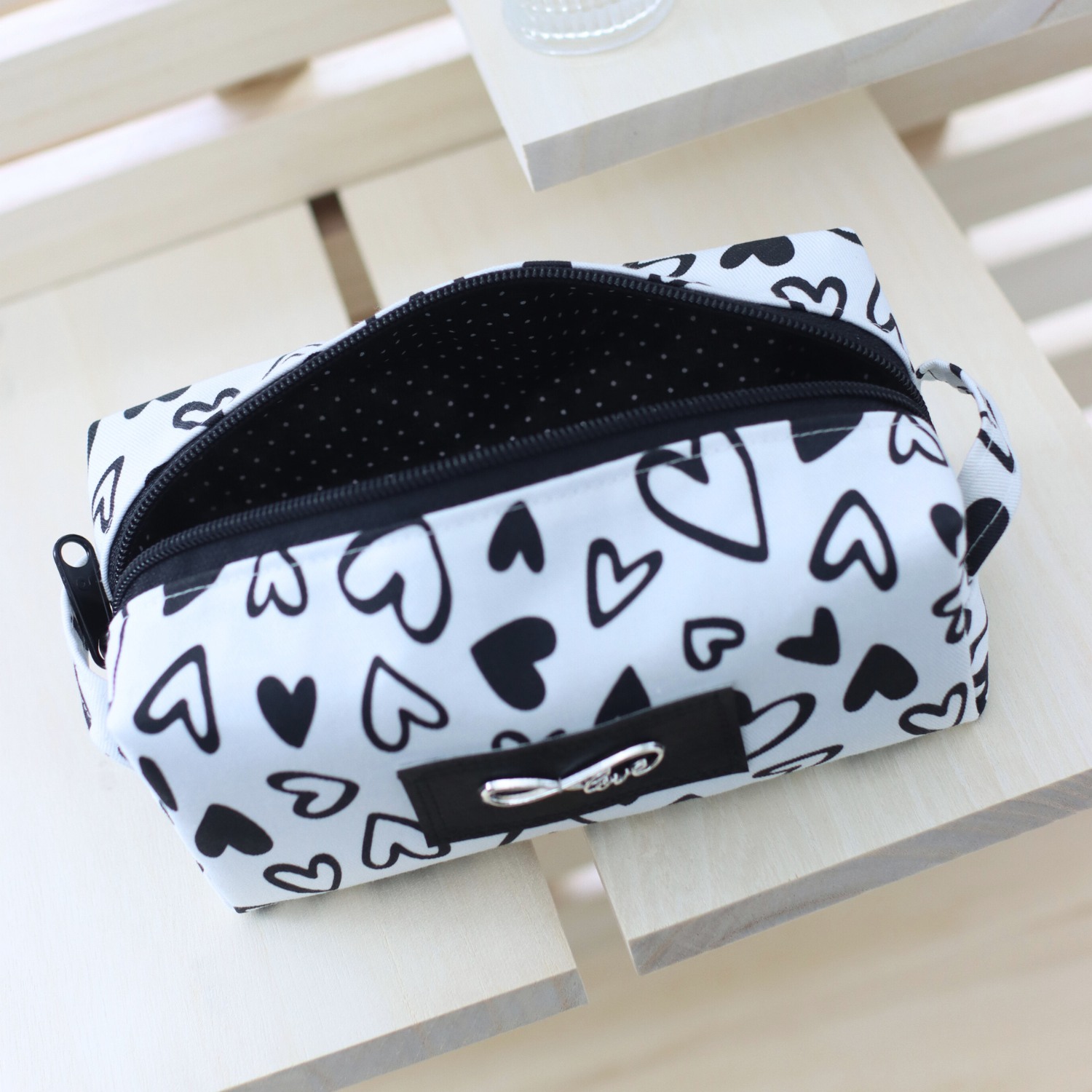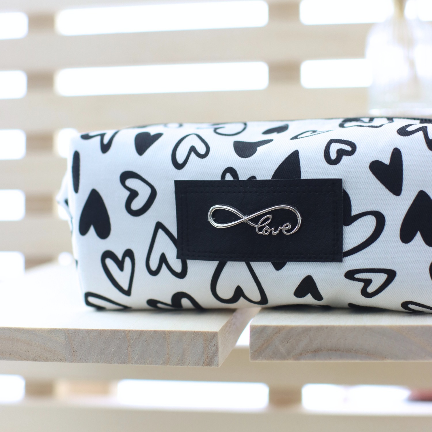 - Außen ein heller, fester Canvas mit Herzen