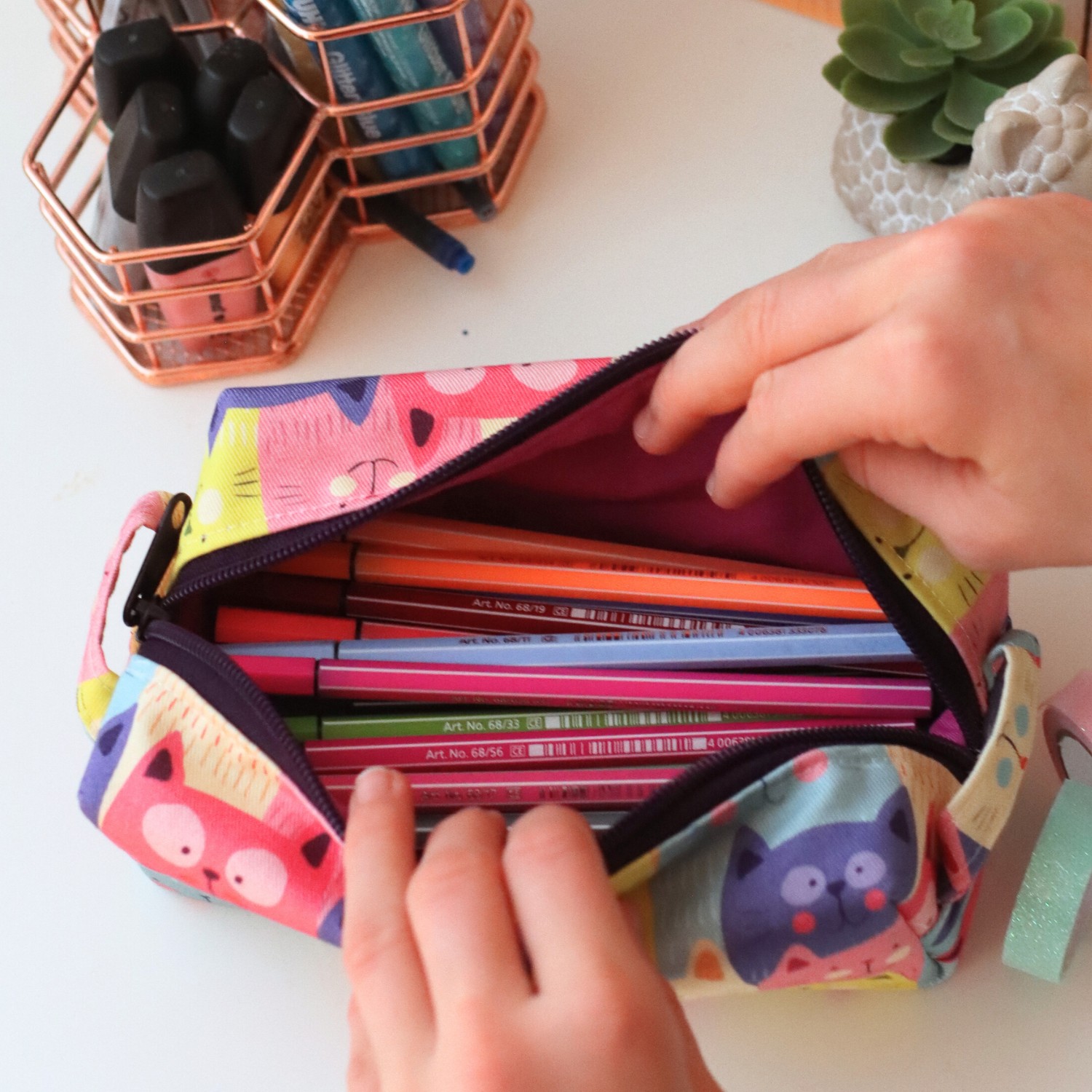 - Außen ein fester Canvas mit süßen Katzen in verschiedenen Farben
