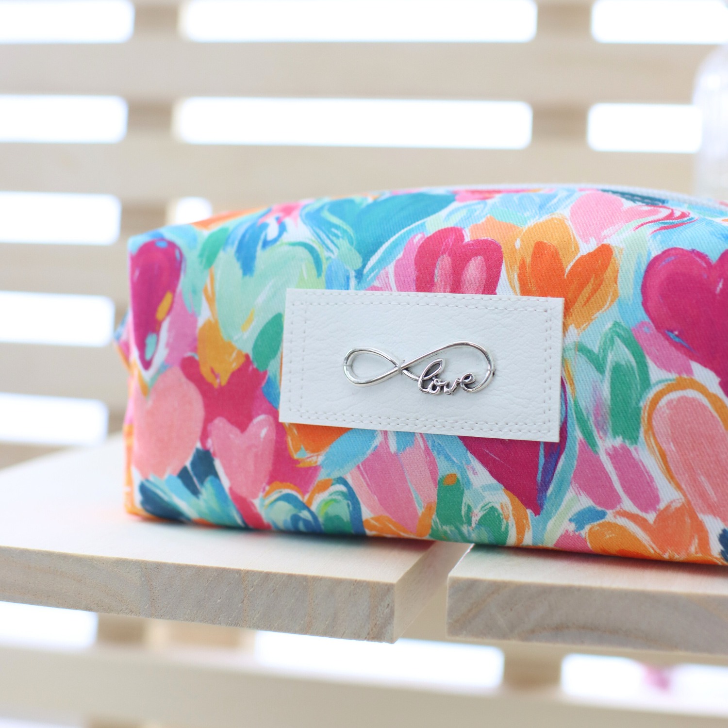 - Außen ein fester, farbenfroher Canvas mit bunten Herzen