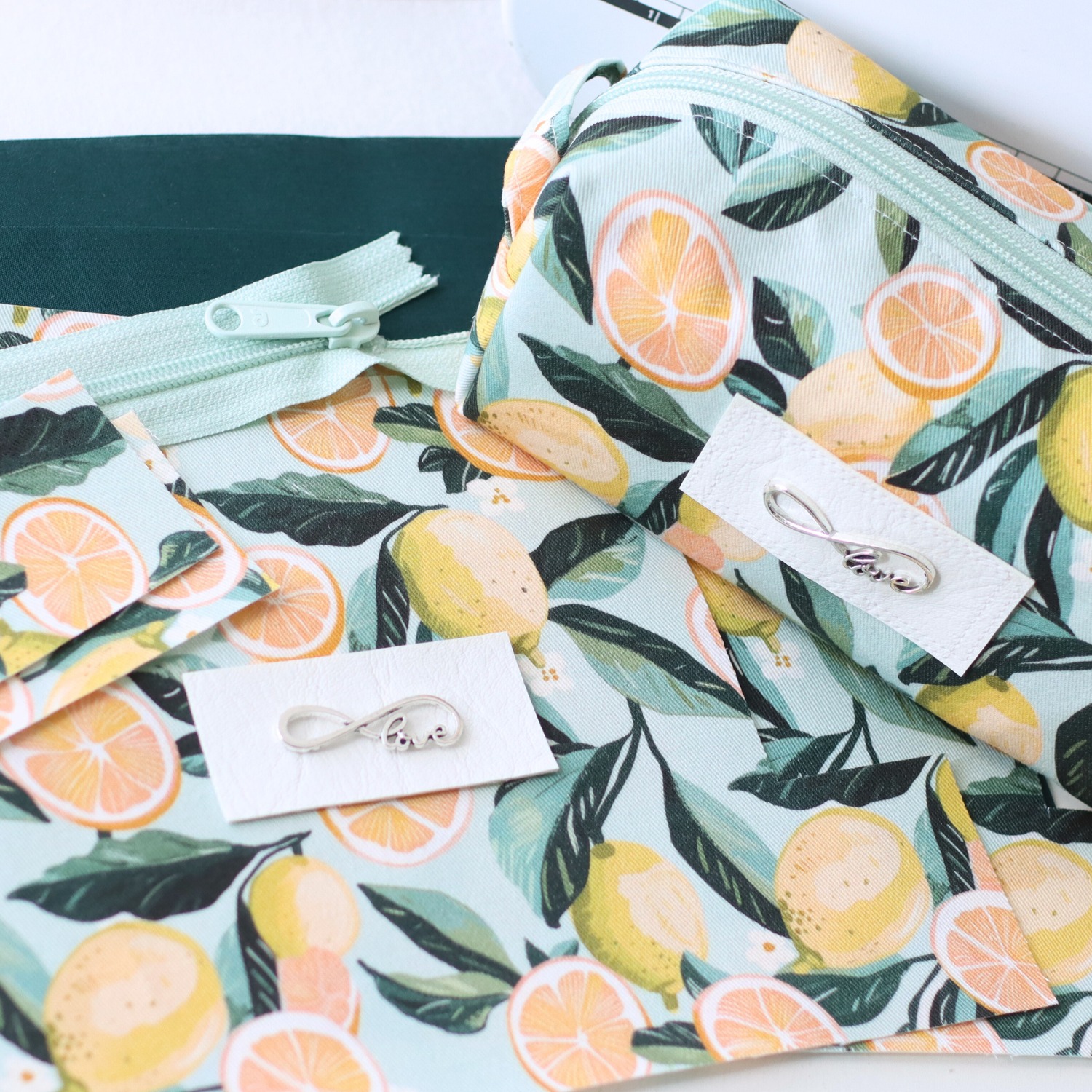 - Außen ein mintfarbener Canvas mit Zitronen und Blättern