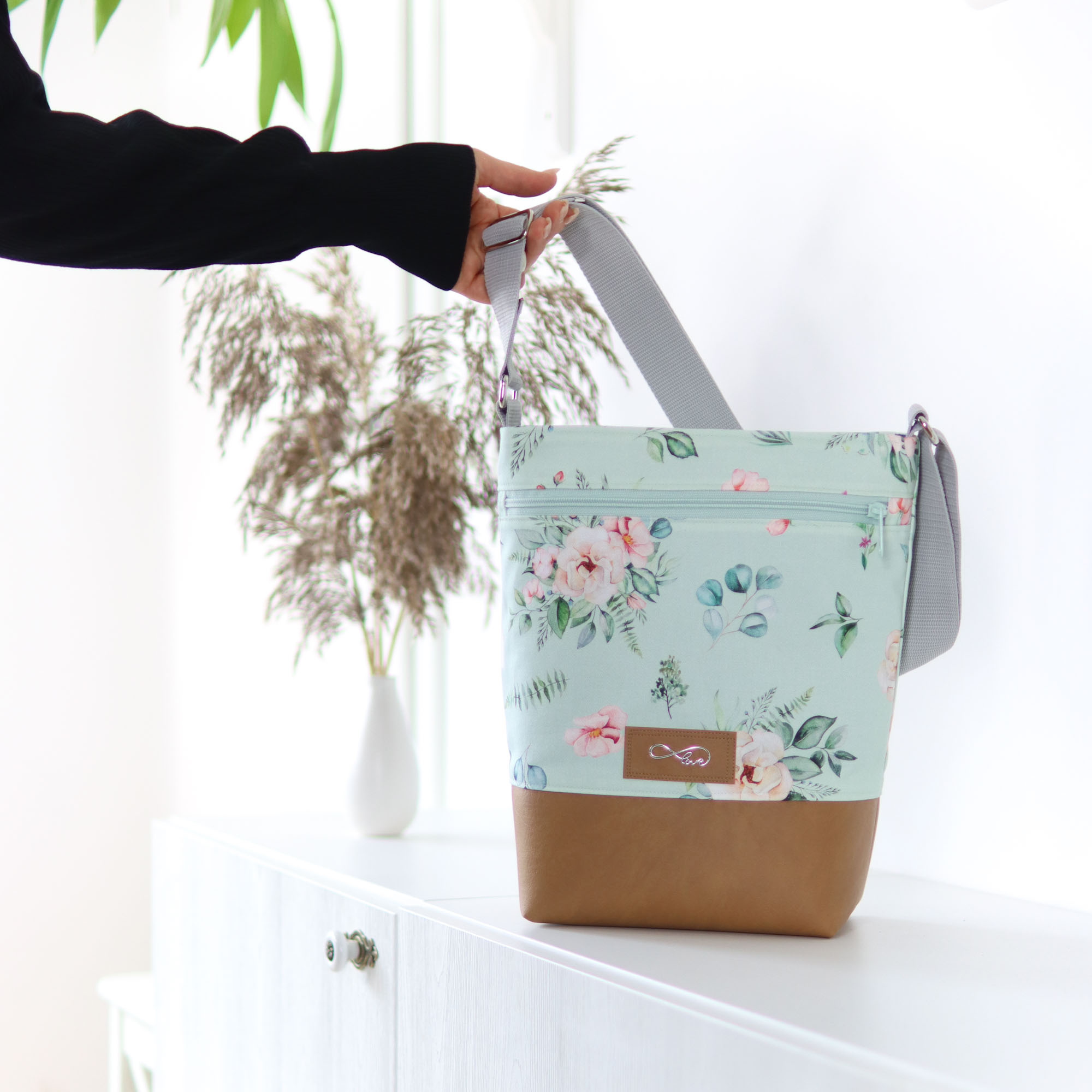 Die Umhängetasche wird dein praktischer Begleiter für jeden Tag. Darin verstaust du alles Wichtige, was du beim Einkaufen, Shoppen oder auf Arbeit benötigst. Die Tasche verfügt über ein Außenfach mit Reißverschluss, ein Innenfach, einen oben eingenähten Reißverschluss und der Träger aus Gurtband lässt sich individuell einstellen.