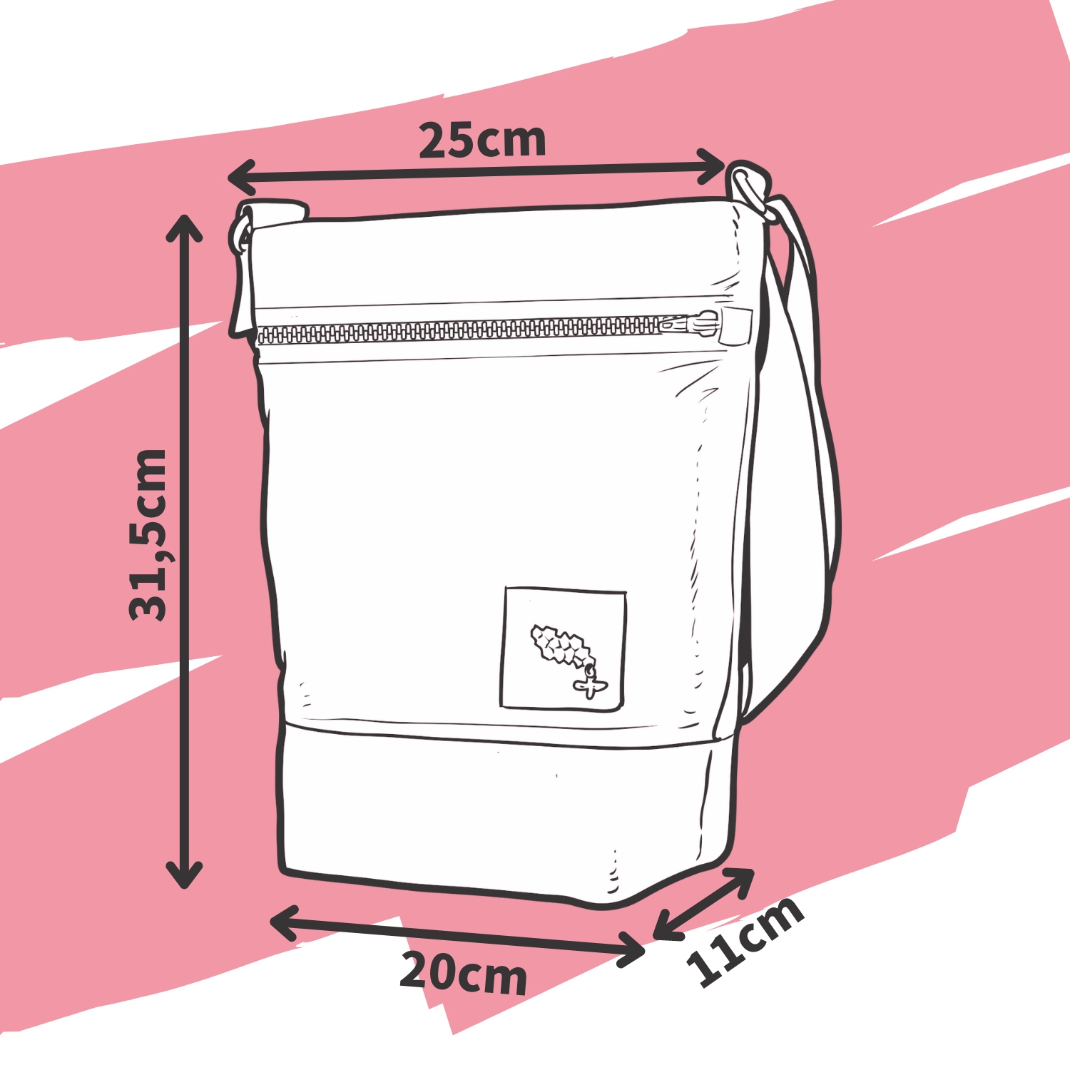 - Größe deiner fertigen Tasche: 20cm breit und 11cm tief, insgesamt 31,5cm hoch mit einer 25cm breiten Taschenöffnung.