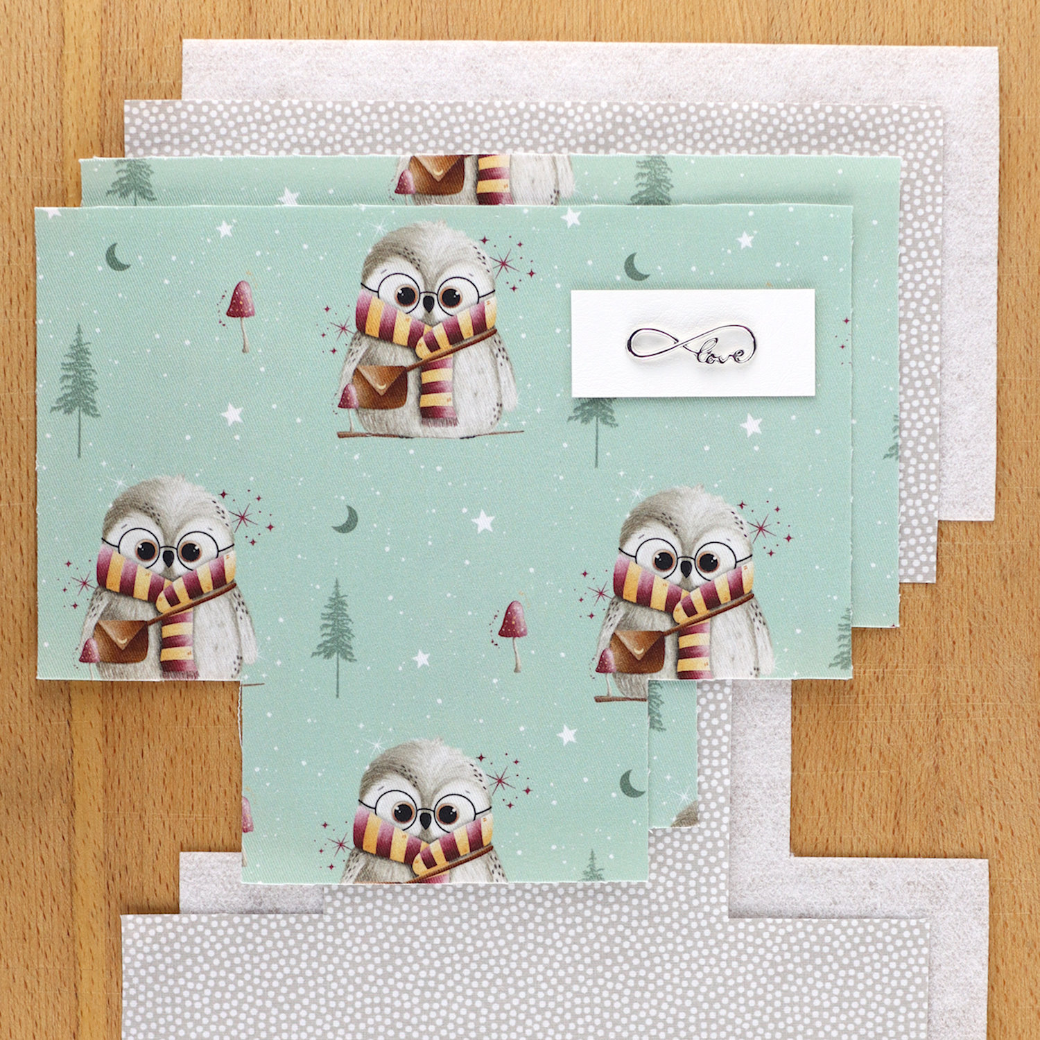 - Außen ein mintfarbener, fester Canvas mit süßen Eulen