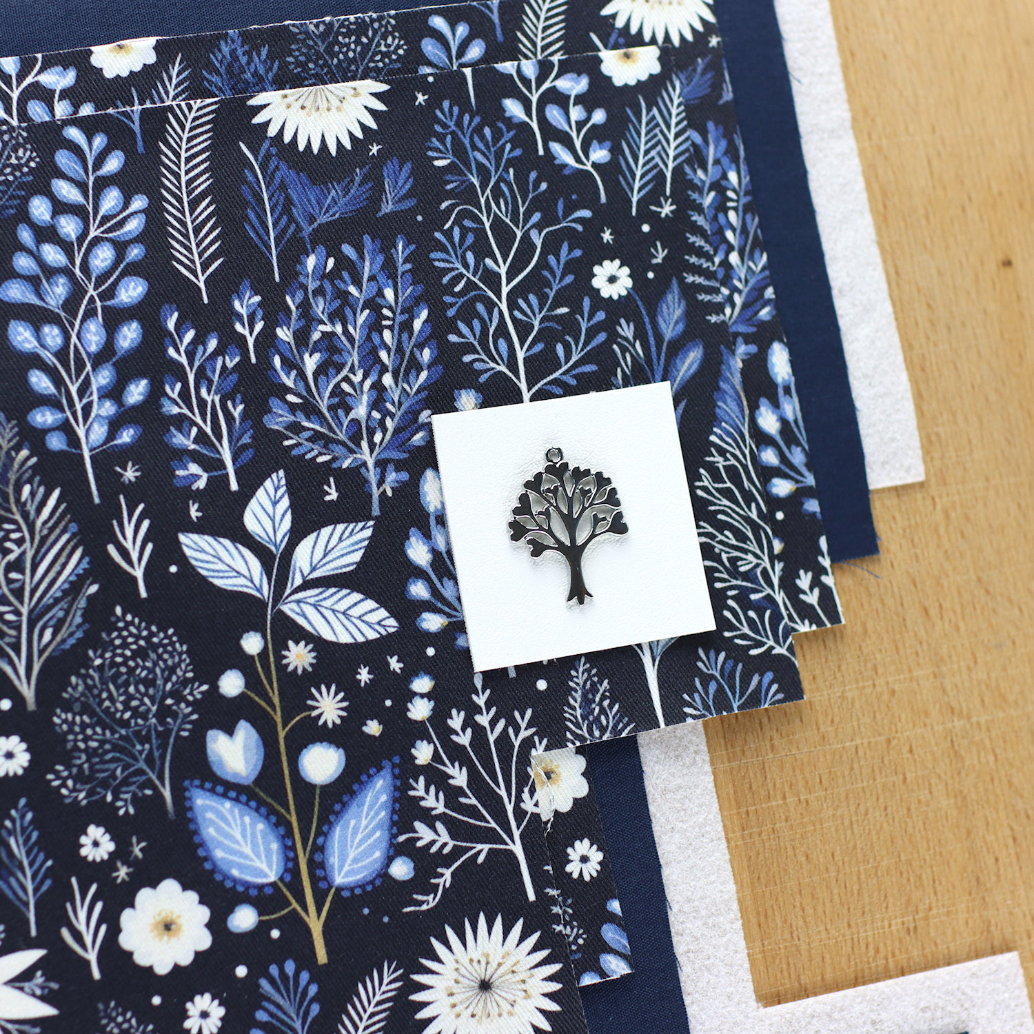 - Außen ein dunkelblauer, fester Canvas mit Winterblumen