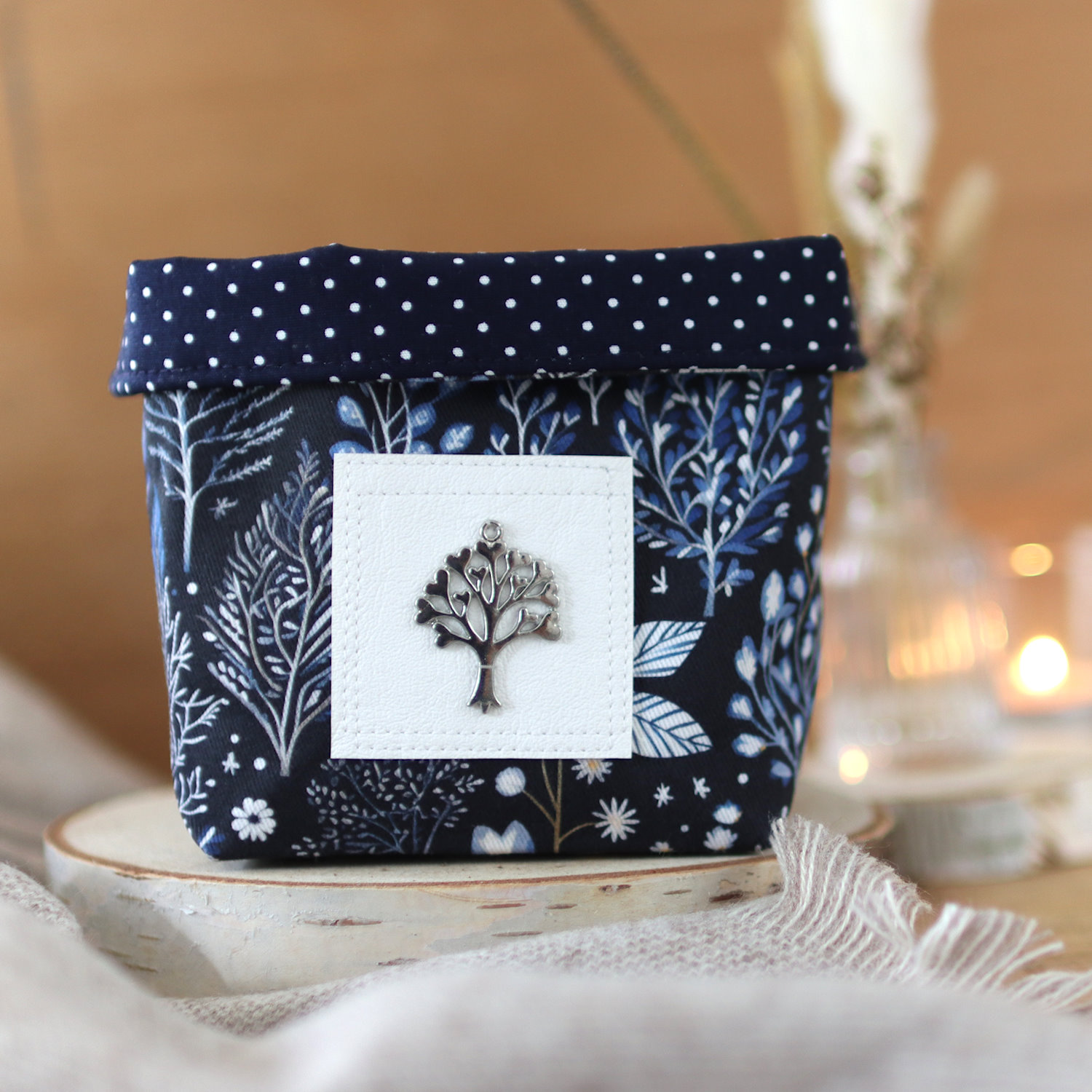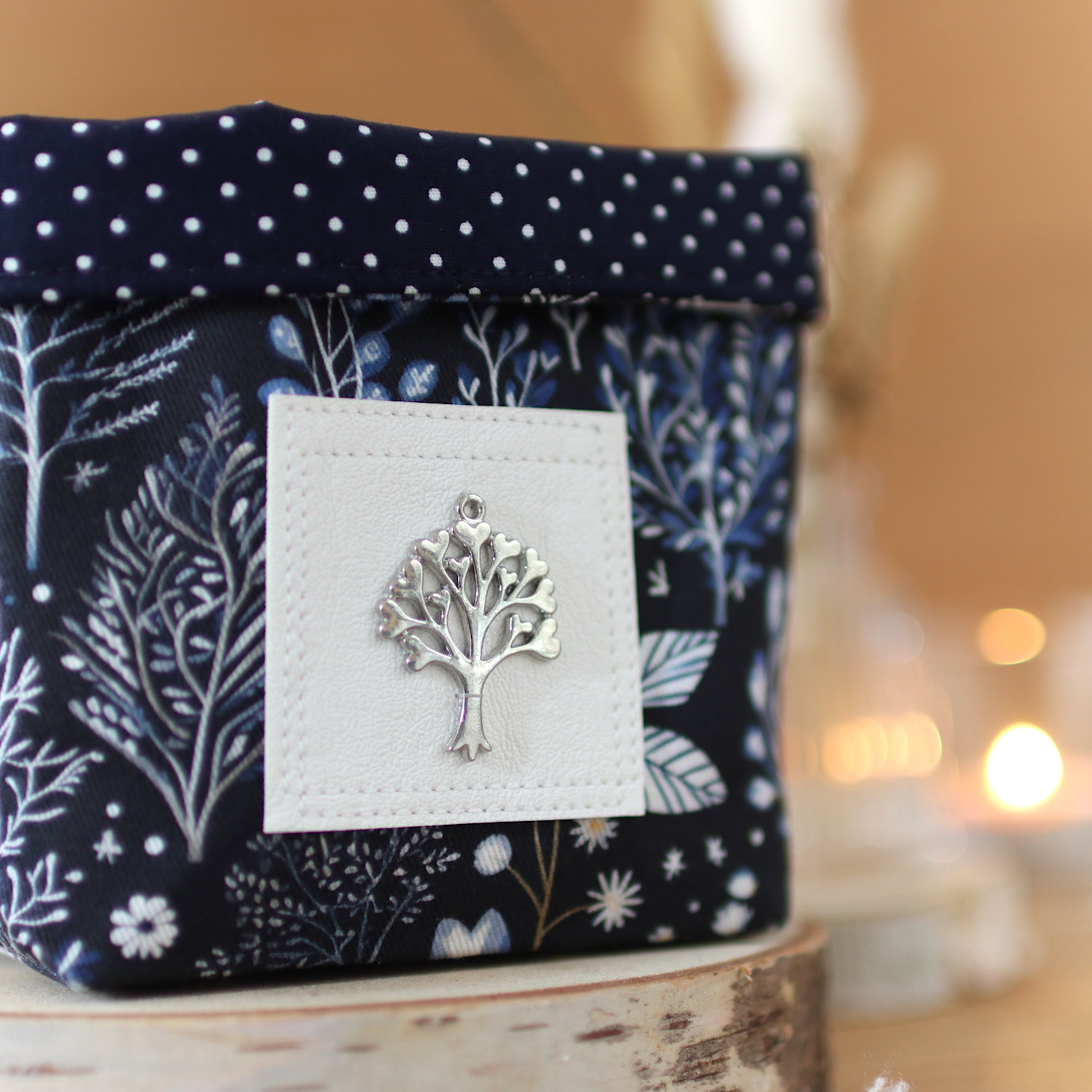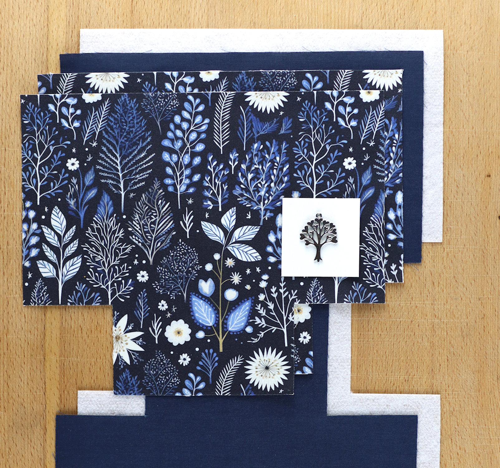 - Außen ein dunkelblauer, fester Canvas mit Winterblumen