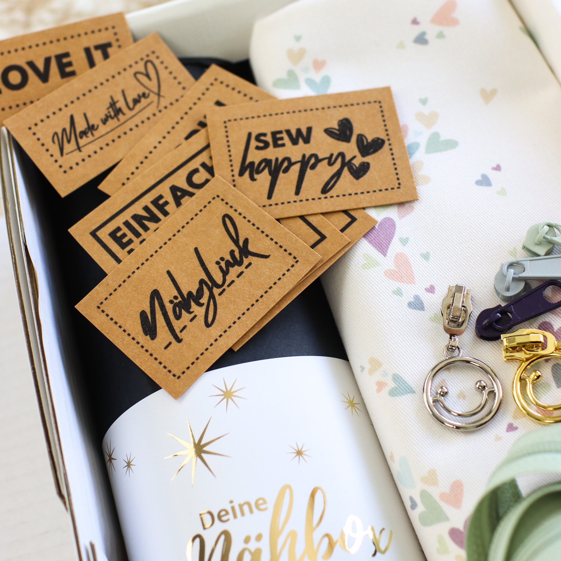 Unsere Weihnachtsbox ist zurück und bringt auch dieses Jahr wieder festliche Nähfreude in dein Zuhause! Du wählst dein Lieblings-Nähset aus, dazu kommen der neue Canvas „Pastellzauber“, drei farblich abgestimmte Endlosreißverschlüsse, zehn dazu passende Schieber, ein Labelset und eine kleine Weihnachtsdose. Liebevoll verpackt in einer großen weißen Geschenkbox – perfekt zum Verschenken oder Selbstbehalten. Ein kreatives Highlight für die Weihnachtszeit!