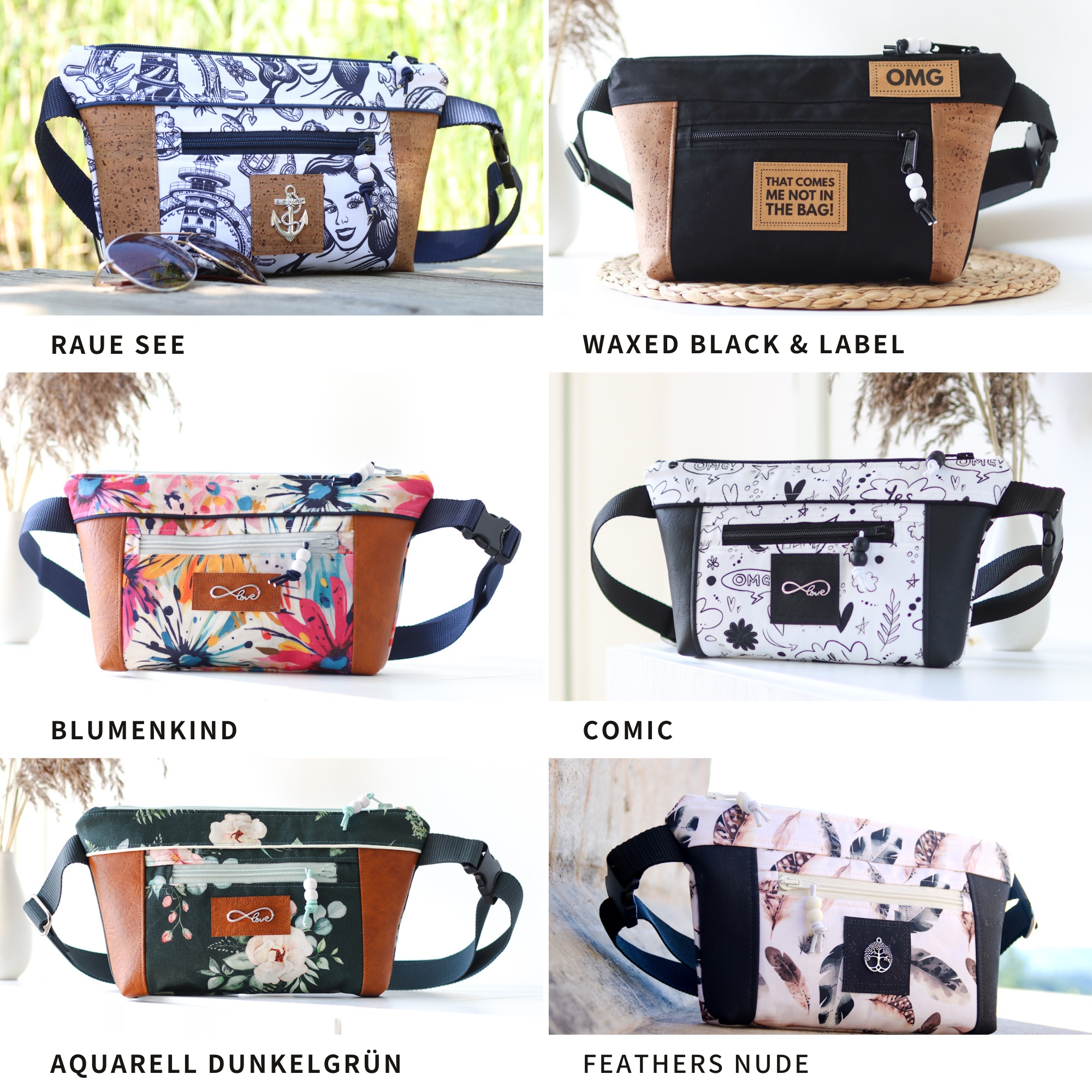 - komplettes Nähset für eine Gürteltasche deiner Wahl, inkl. zugeschnittenen Stoffteilen, Zubehör & ausführlicher Anleitung