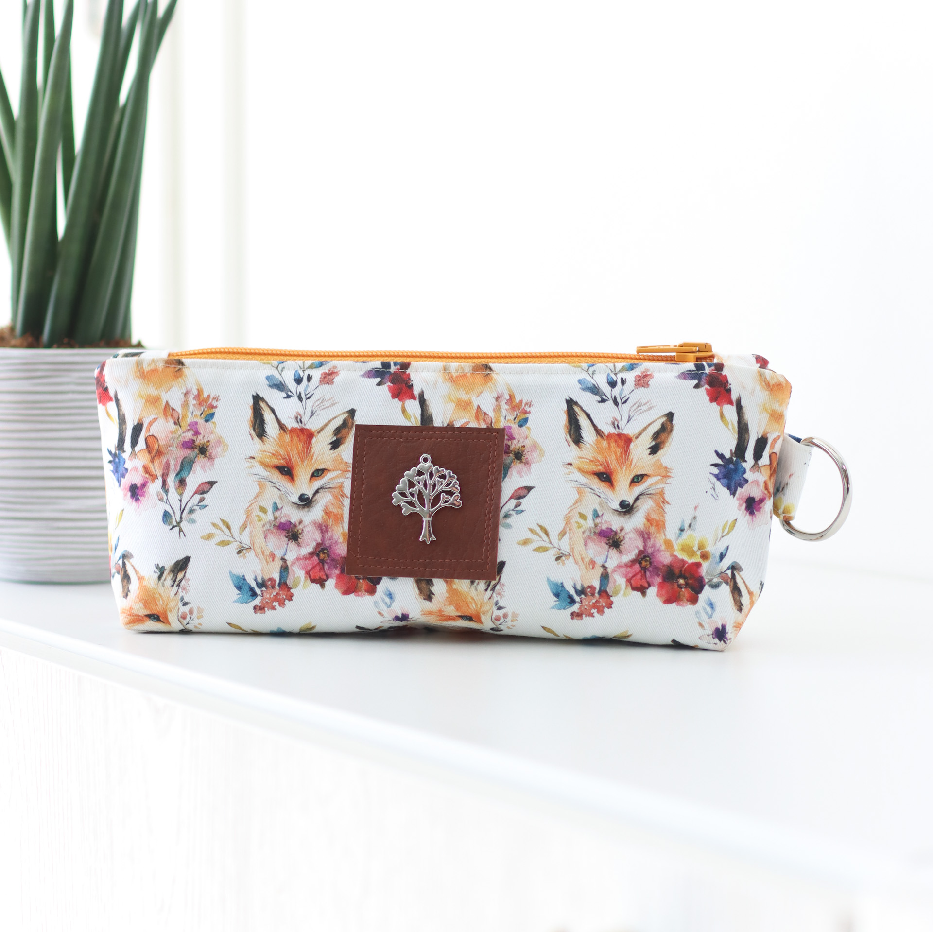 - Außen ein heller Canvas mit Füchsen & Blüten