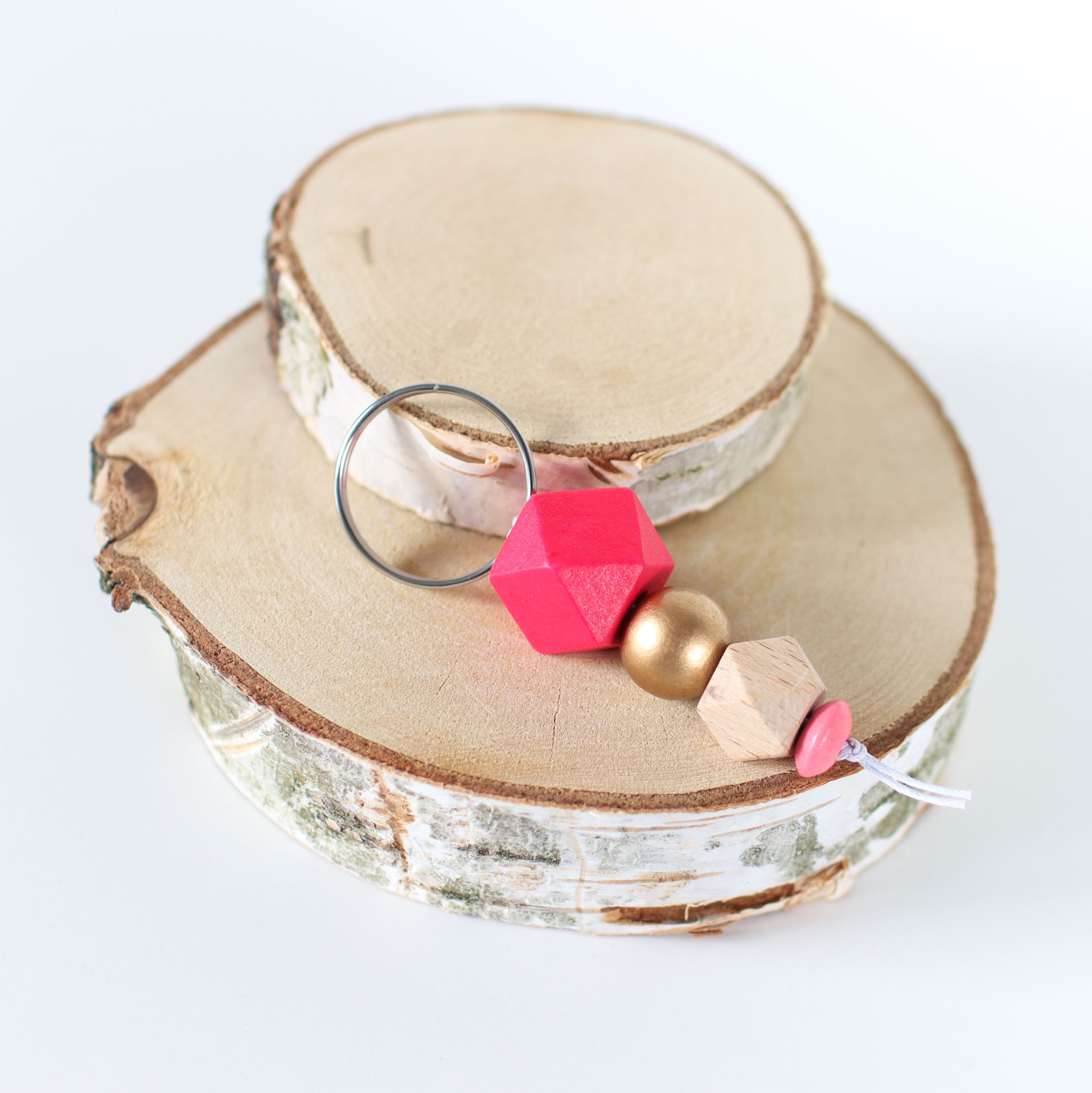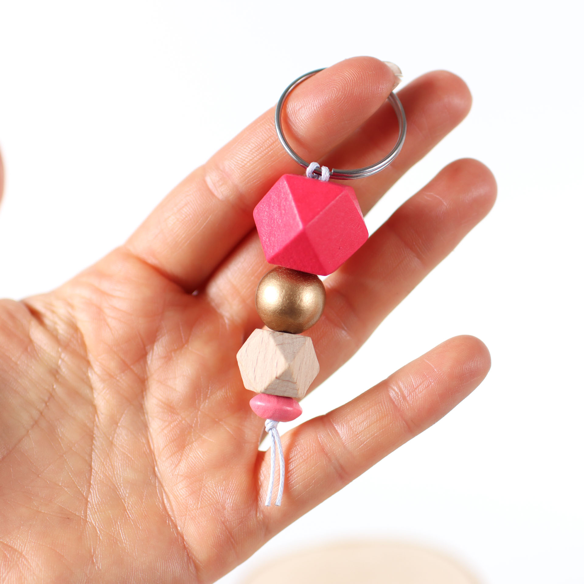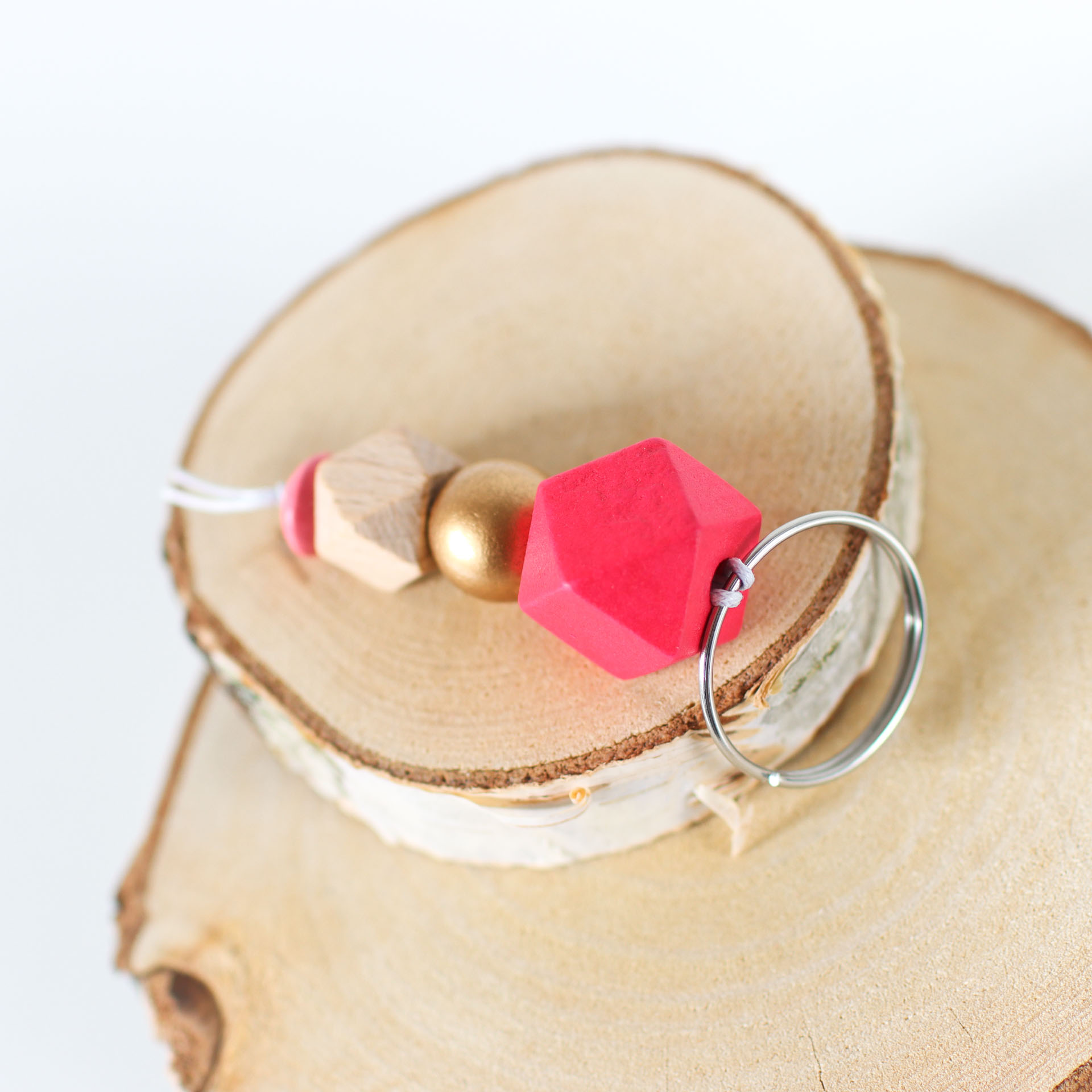 Schicker Schlüsselanhänger aus verschiedenen Holzperlen, den du beispielsweise an Reißverschlüssen befestigen kannst und deine Taschen und Accessoires aufpeppen kannst.