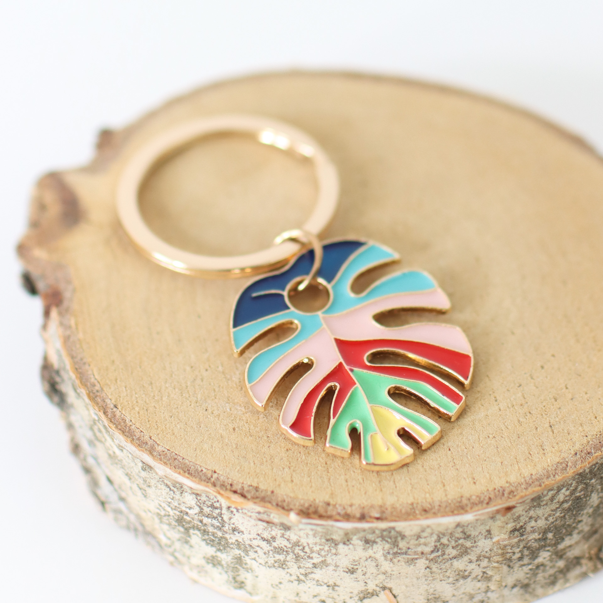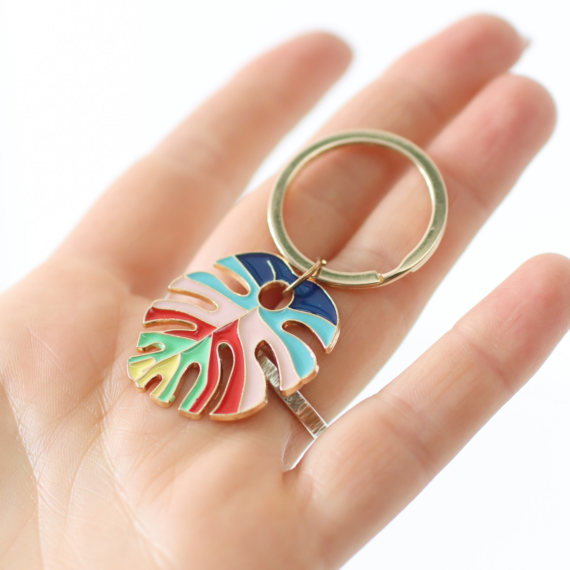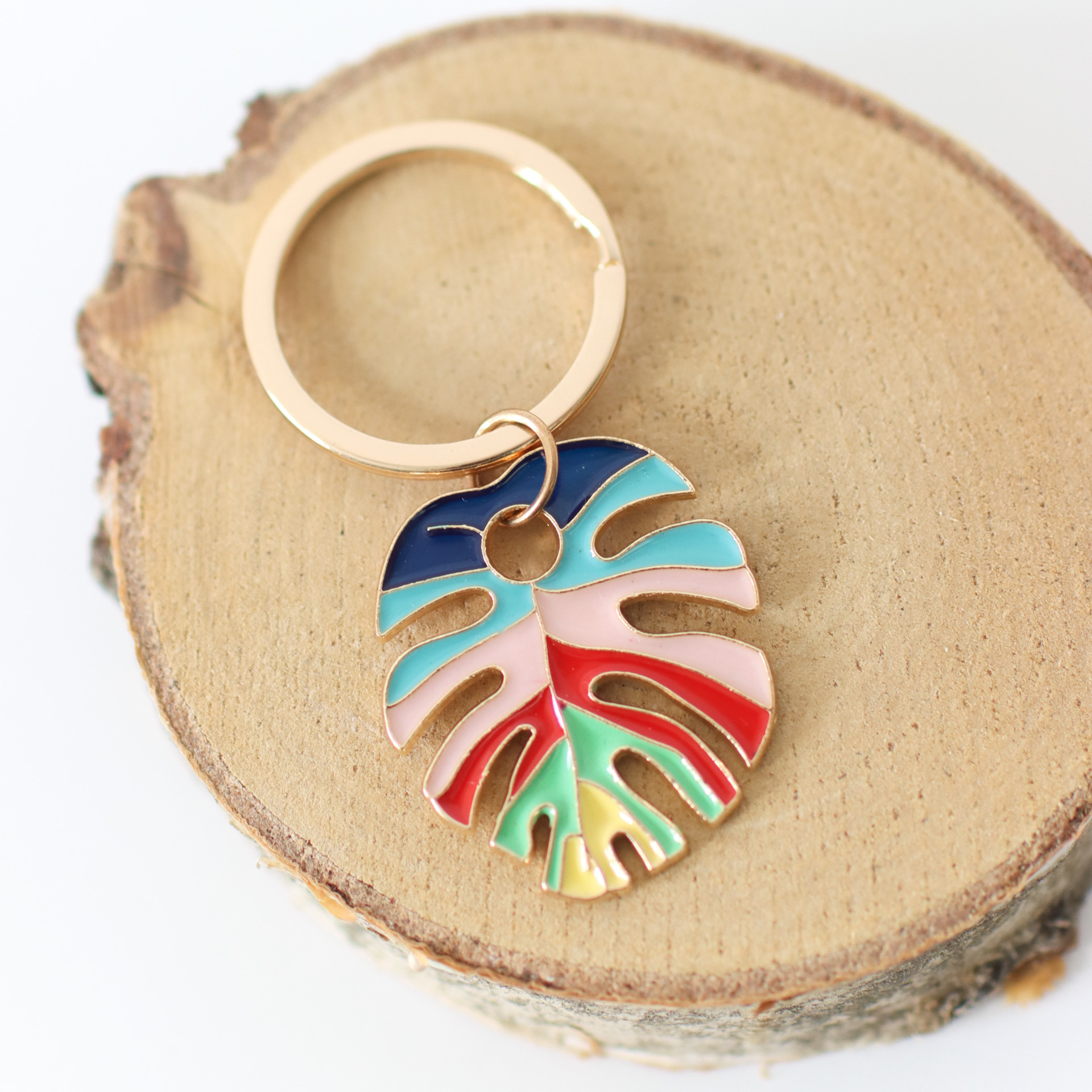 Schicker Schlüsselanhänger, den du beispielsweise an Reißverschlüssen befestigen kannst, um deine Taschen und Accessoires aufzupeppen. Mit großem Monstera Blatt als Anhänger in bunten Farben.