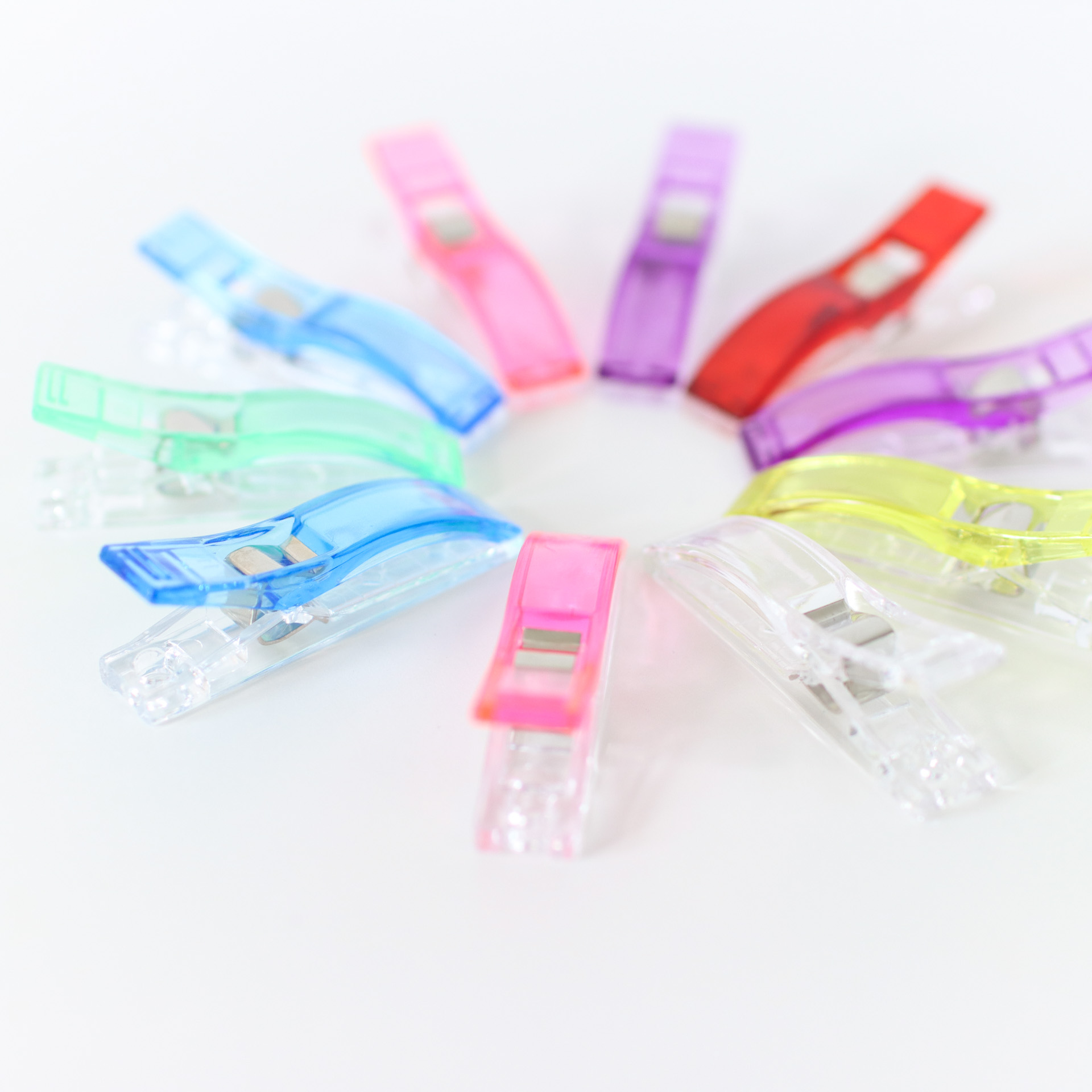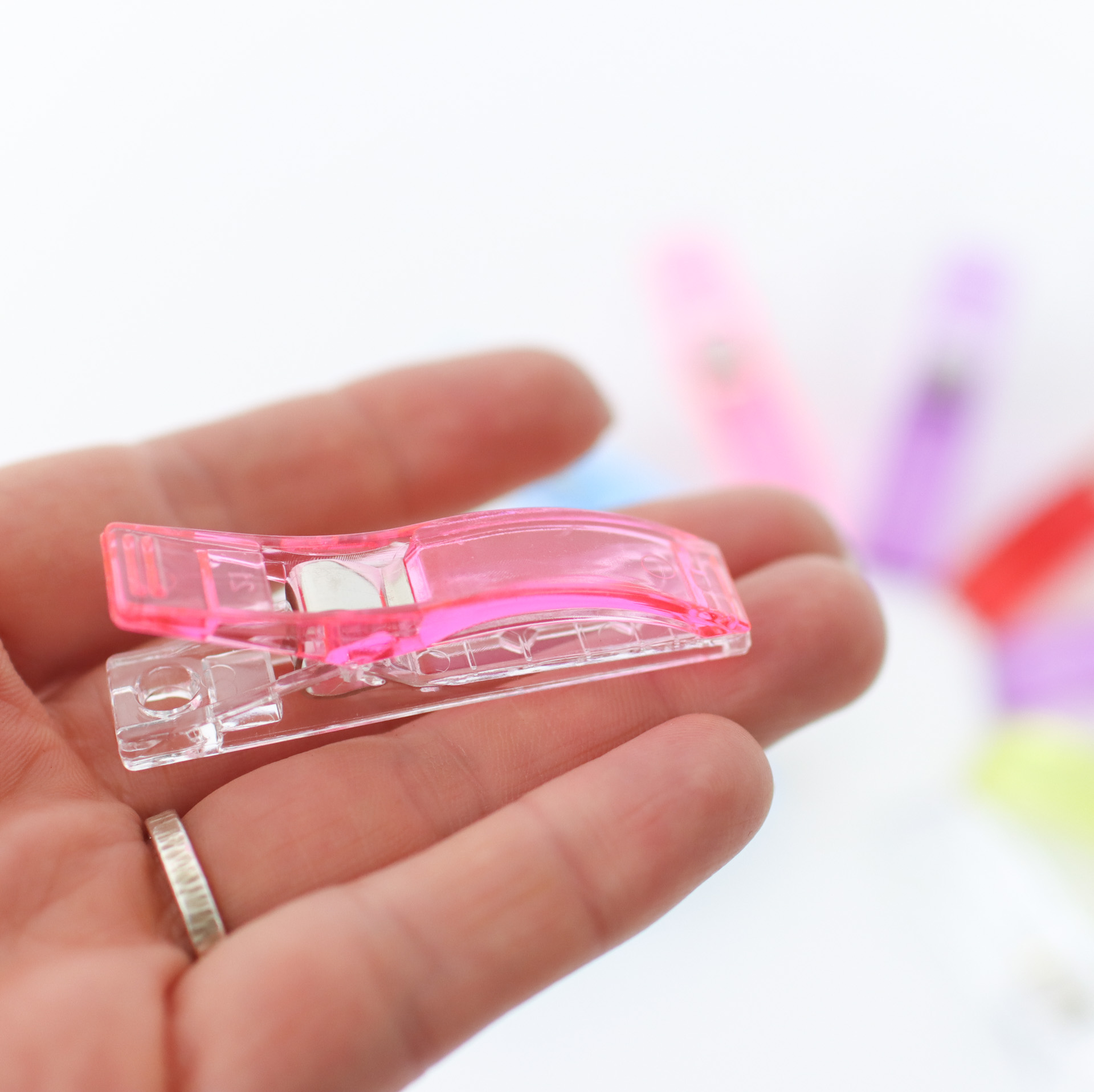 Stoffklammern (oder Wonderclips) sind bei uns täglich im Einsatz und perfekt beim Nähen von Taschen, da sie sicher mehrere Stofflagen fixieren. Sie lassen sich super easy anbringen und beim Nähen ganz einfach entfernen.